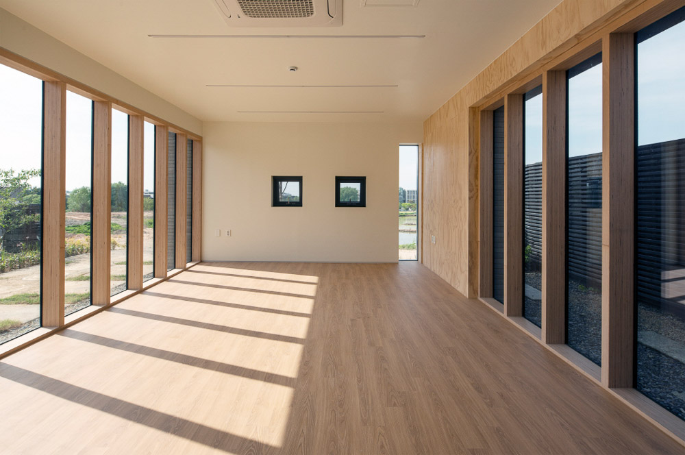 When viewed from the road, there is a small fence with a layer that allows entry and exit through the concave interspace, and internal movement is always made to circulate around the intervening space. The deep eaves with simple mass and function were unified with the gray of cement bricks, and the interior was brought together with the scent and color of wood.