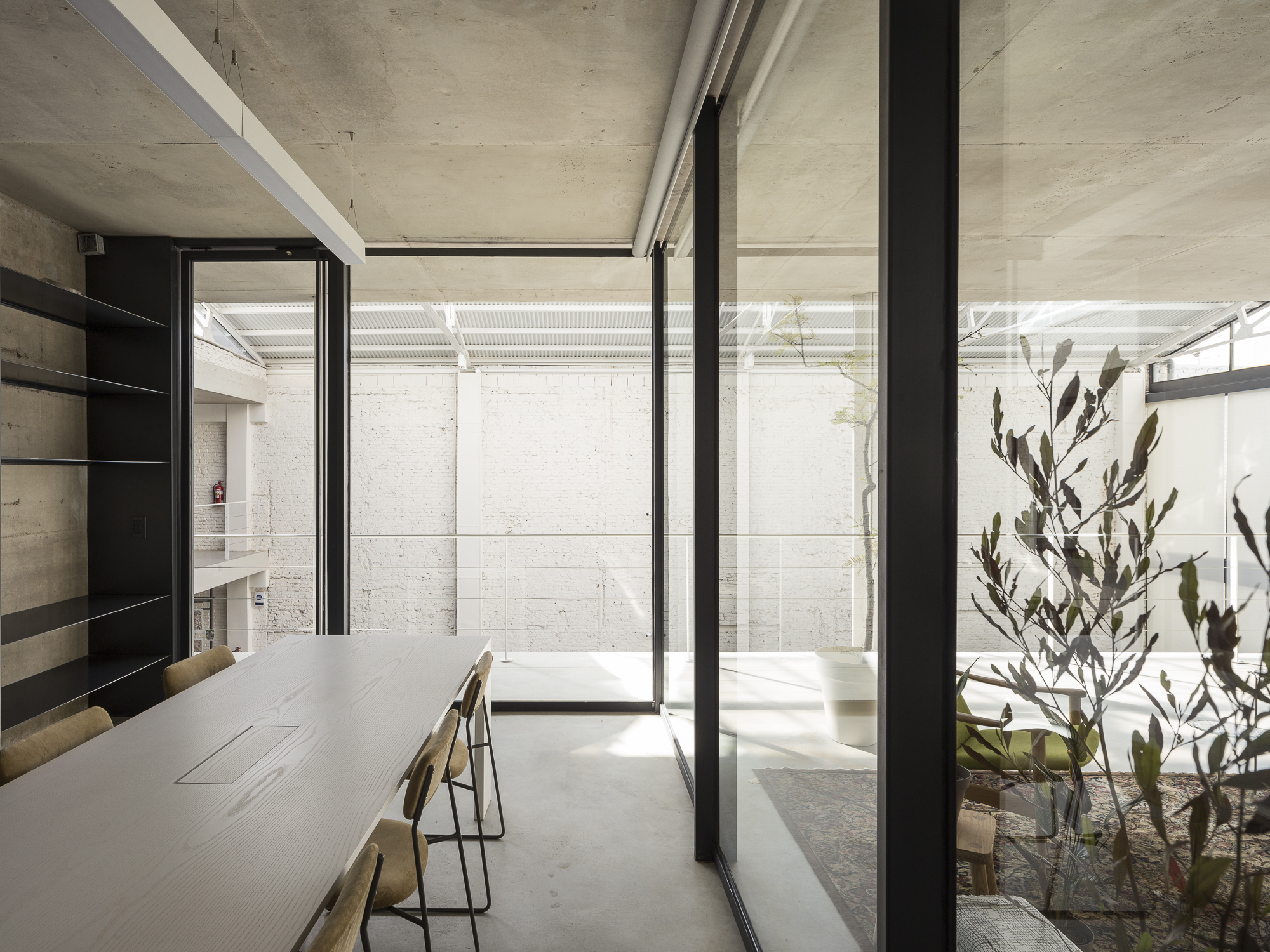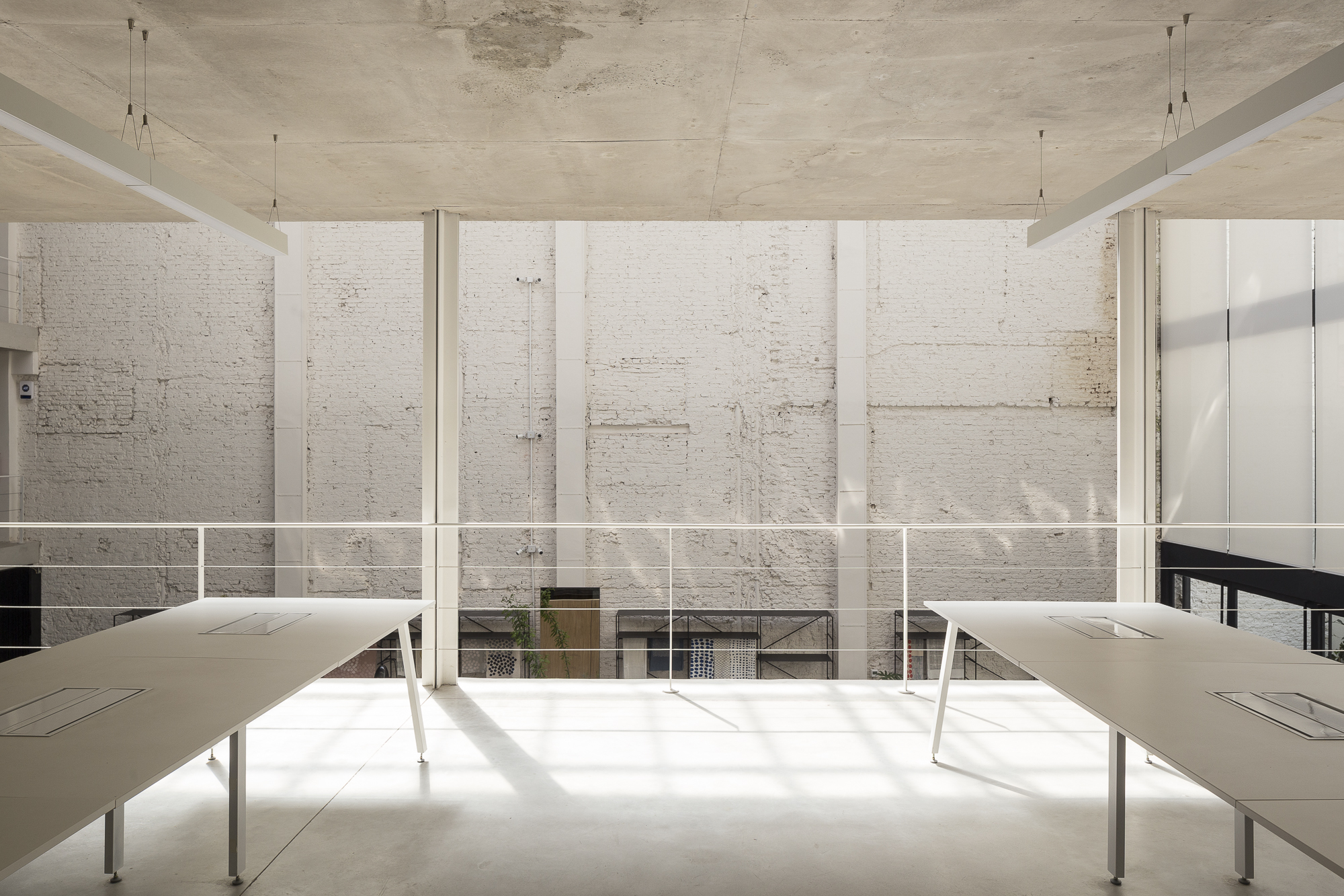 SOLER Project was developed in a particular space: an old warehouse next to an annexed area in the back, in Palermo, neighborhood, in Buenos Aires city, Argentina. The building had to contain the offices, deposits and exhibit areas for a Company, that designs and trades textile products. The proposal aimed to create an intimate world of its own, maintaining the diverse activities and company’s assets, in a dense urban context. One of the main project design themes was the construction of emptiness as a resource to integrate people and work teams. Among this, the void emerges as a revealing resource of diverse experiences and artistic interventions based on textile design, the central company’s hub.