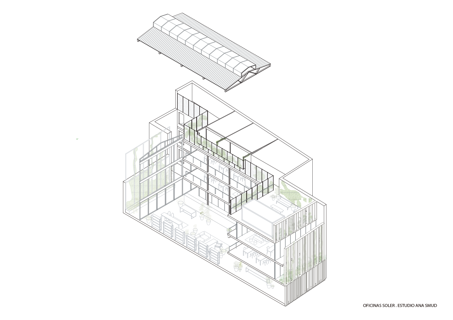 Soler Textiles Office는 아르헨티나 부에노스아이레스 시에 있는 팔레르모의 오래된 창고에서 개발되었다. 이 건물에는 섬유 제품을 설계하고 거래하는 회사의 사무실과 전시 공간이 있어야 했다. 이 제안은 밀도 높은 도시 맥락에서 다양한 활동과 회사의 자산을 유지하면서 자신만의 친밀한 세계를 만드는 것을 목표로 했다. 프로젝트 설계의 주요 테마 중 하나는 사람과 작업팀을 통합하는 자원으로서의 공허함을 구성하는 것이었다. 그 중 보이드는 기업의 중심인 섬유 디자인을 기반으로 다양한 경험과 예술적 개입의 자원으로 등장한다.