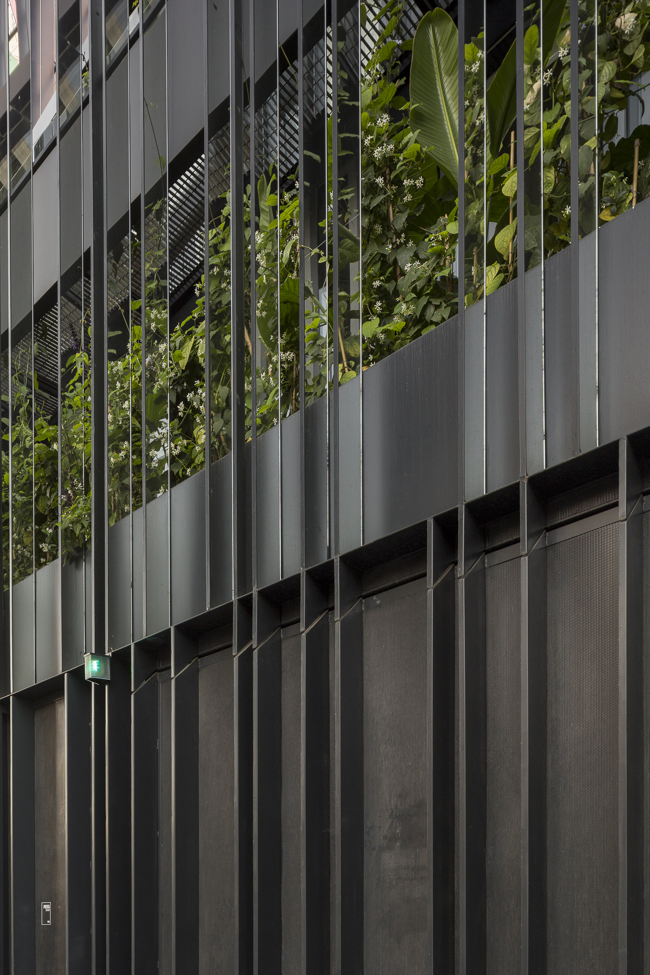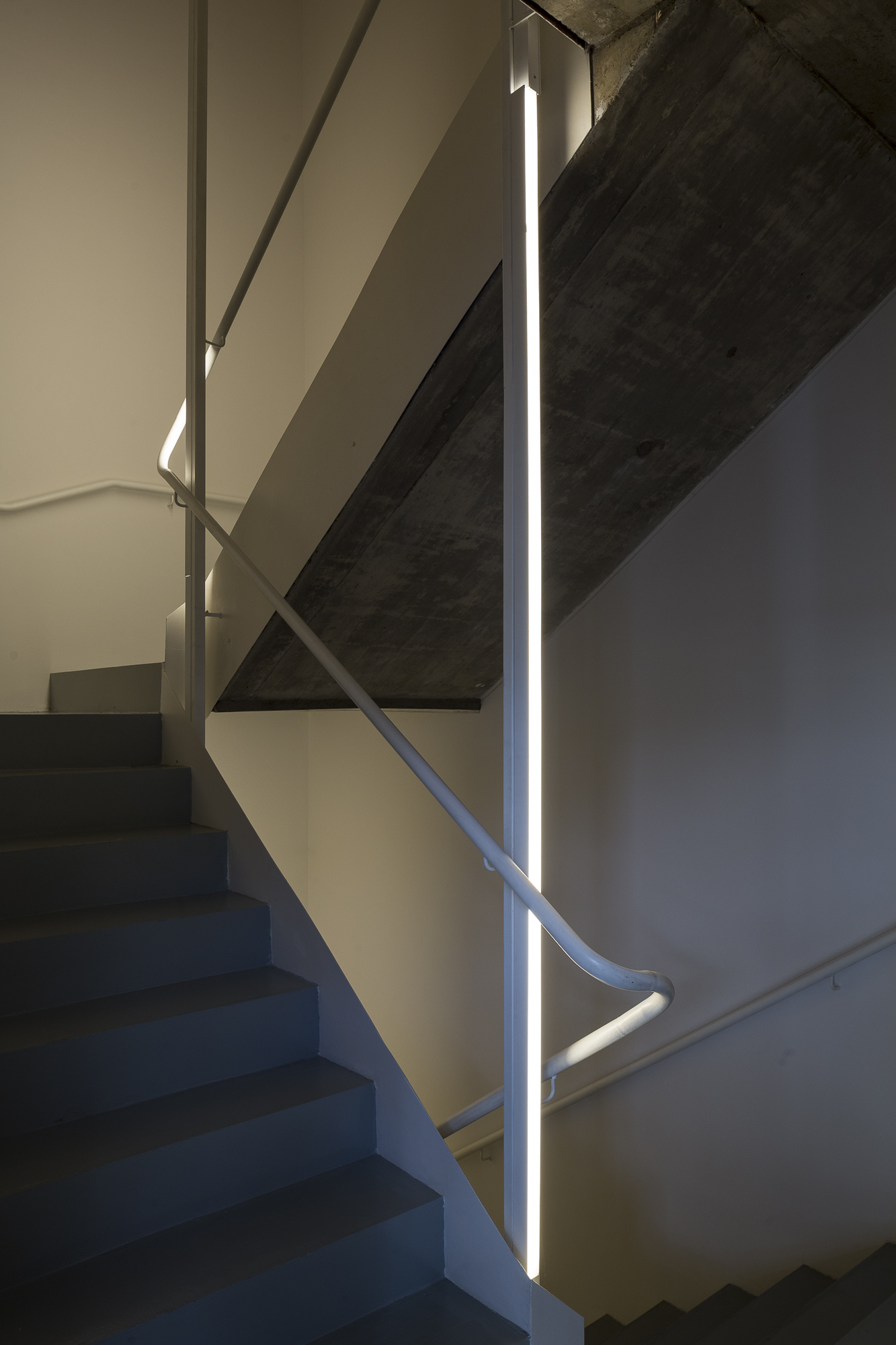 창고의 증축과 재활용을 통해 회사의 상품 전시회와 다양한 행사가 열리는 메인 공간을 배치하기 위한 거대한 볼륨을 만들고 대체 작업 공간을 했다. 이 광활한 공간을 다양한 스케일로 작업하고 추가적인 용도를 제공하여 새롭게 리모델링했다. 폐쇄된 사무실과 워크스테이션이 위치한 인접한 건물 위에 두 개의 층이 증축됐다. 새로운 건물은 섬세하게 나란히 배치되어 있다. 큰 창문, 높은 천장, 그리고 작업에 최적화된 탁 트인 평면은 창의적인 사고가 펼쳐지는 영역을 나타낸다. 거리에 면해 있는 정면이 조용히 펼쳐져 있다. 투명함과 불투명함을 동시에 불규칙한 리듬의 반사 수직 기둥으로 구성되어 있어 조형적 감각을 나타낸다. 뒤편에는 초목이 우거진 테라스가 반사적으로 어우러져 있다. 반투명 구성의 파사드는 무성한 초목이 자랄 수 있는 공간을 제공한다.