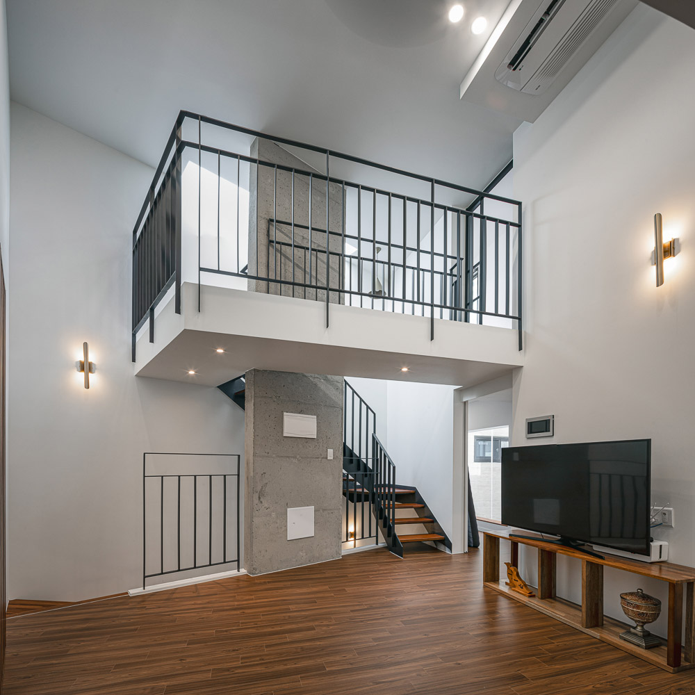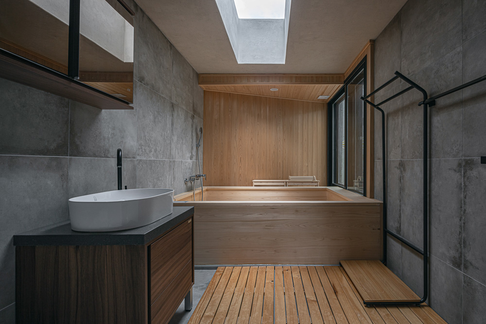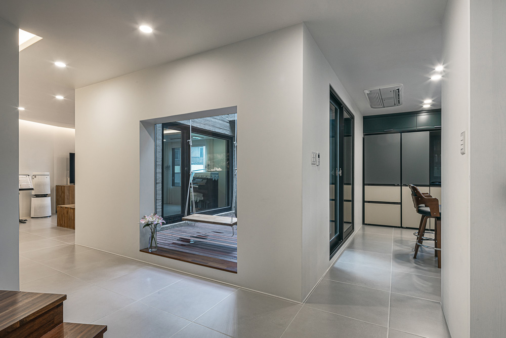 The courtyard and two lounging spaces inside the house are planned so that rest and relaxation can coexist inside and outside. In the courtyard, a louver-type sliding door was installed at the top to block direct sunlight and create a silhouette effect.