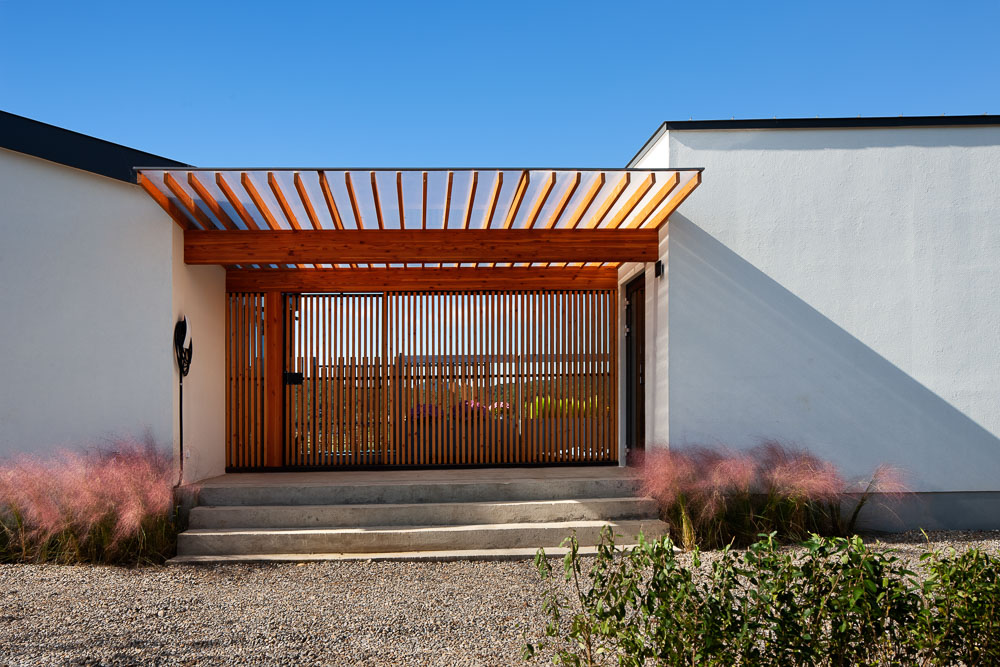 아파트를 버리고 전원을 꿈꾸는 사람들이 저지르는 실수 중의 하나는 옹벽이 둘러싼 자연스럽지 못한 대지를 선택하는 일이다. 넓은 마당을 갖고자 축대를 쌓고 경사진 땅을 평평하고 반듯하게 만드는 것에는 자연도, 마을도 있을 수 없다. 마당이 있다고 한들 ‘도시 아파트의 삶’과 다를 바 없다. ‘The FriYah’의 대지는 위아래로 얇고 긴 데다 땅 모양도 지글지글하다. 그럼에도 주변 집들과 얼굴을 맞댄 마당 공간과 남한강으로 펼쳐지는 멋진 조망은 땅의 단점을 상쇄하고도 남는다.