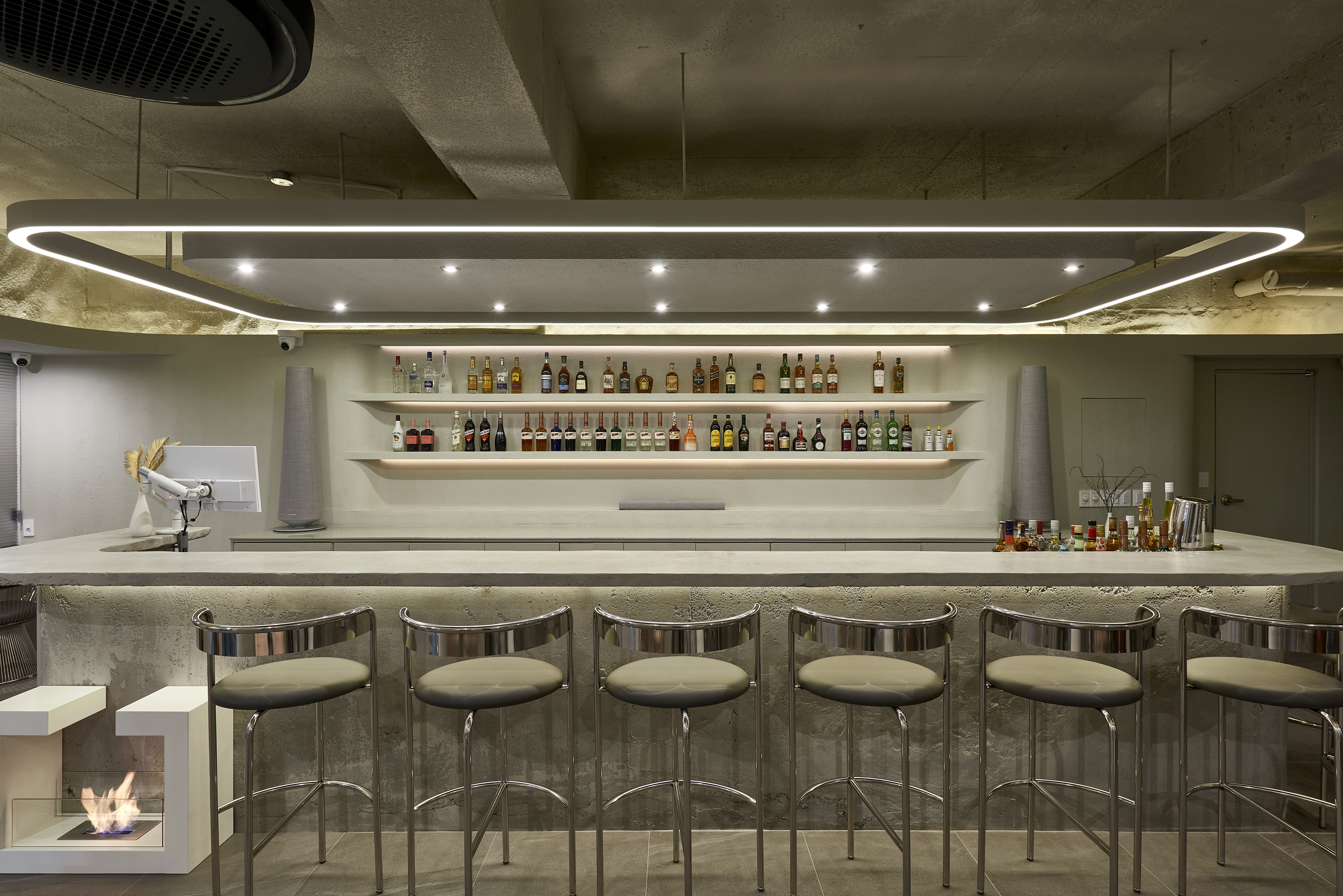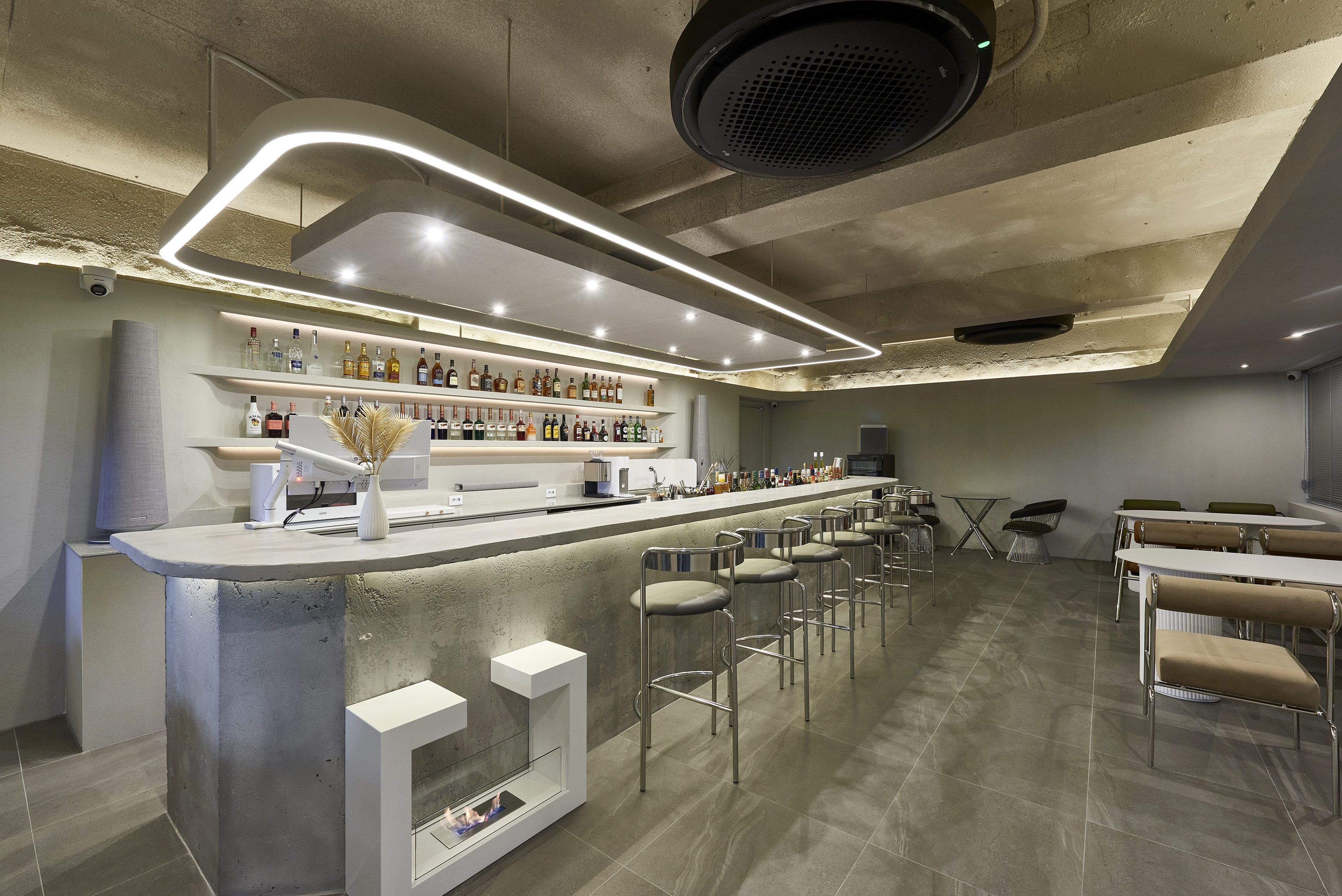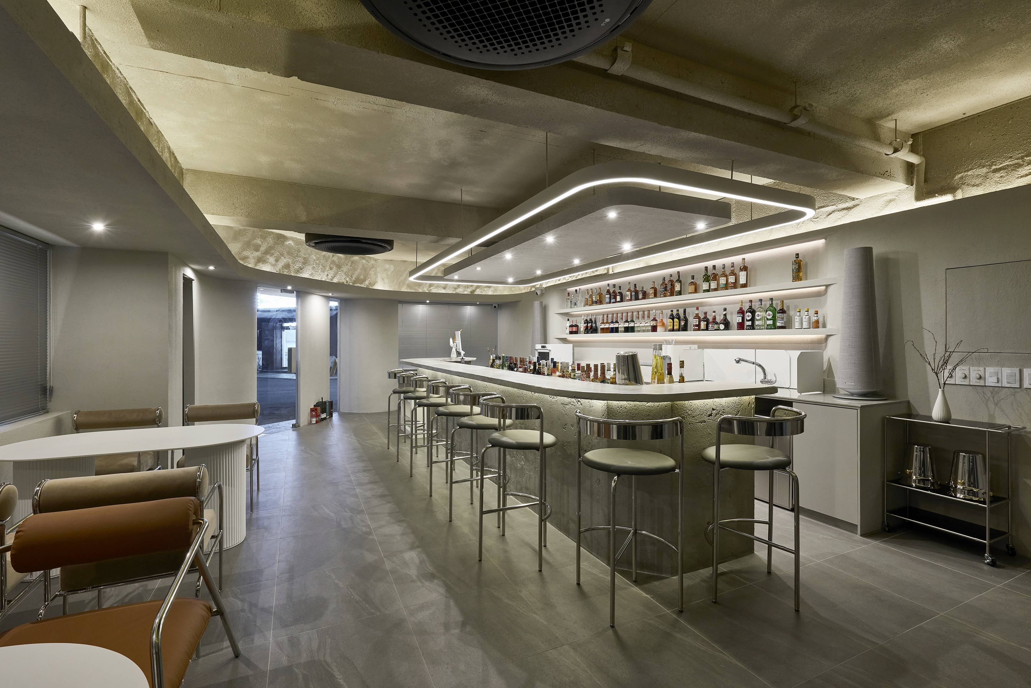 The Stangdal Syndrome refers to mental and physical reactions that feel ecstatic, such as overwhelming and awe, after seeing excellent works of art. Inspired by these mutual meanings, Beaver-lab's interpretation was added to solve the space like a work of art. Rough textures were actively used in the space to give the impression that the artwork was roughly made by hand. Contrary to the rough texture, minimal aesthetics were applied to other spatial elements such as colors, structures, and signboards. Unlike ordinary dark bar stores, the space was created with subtle brightness like a gallery where you can see artworks. The bar counter, which has a lot of time and touch, was interpreted as the most brilliant work in the space of the Standal Syndrome and was created by Beaver-lab.