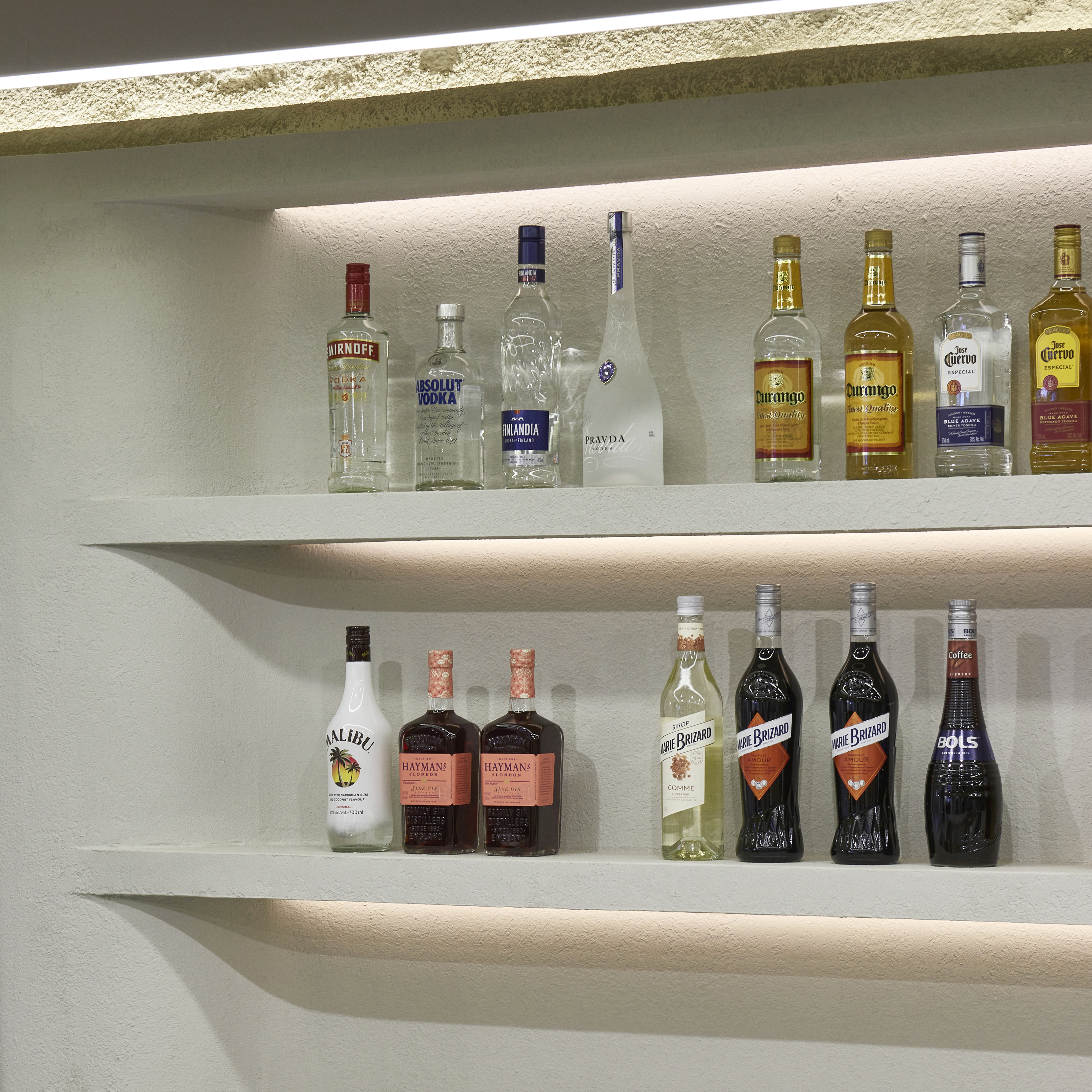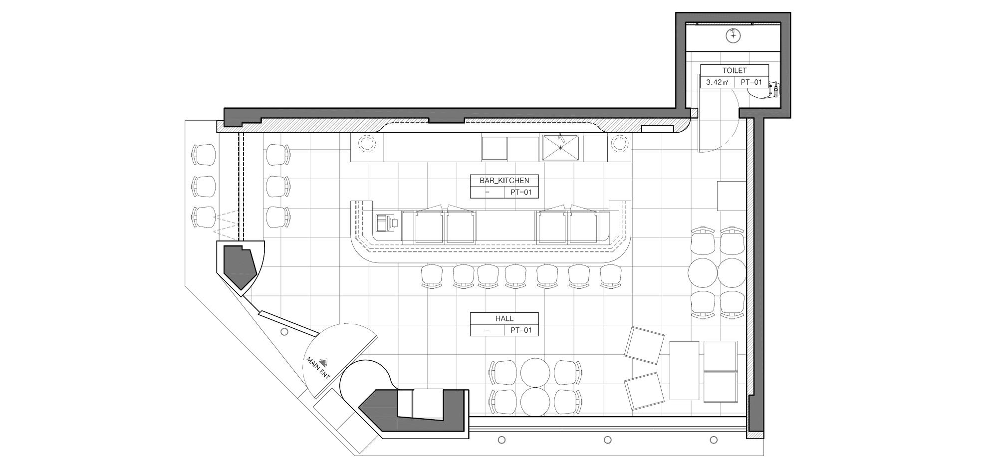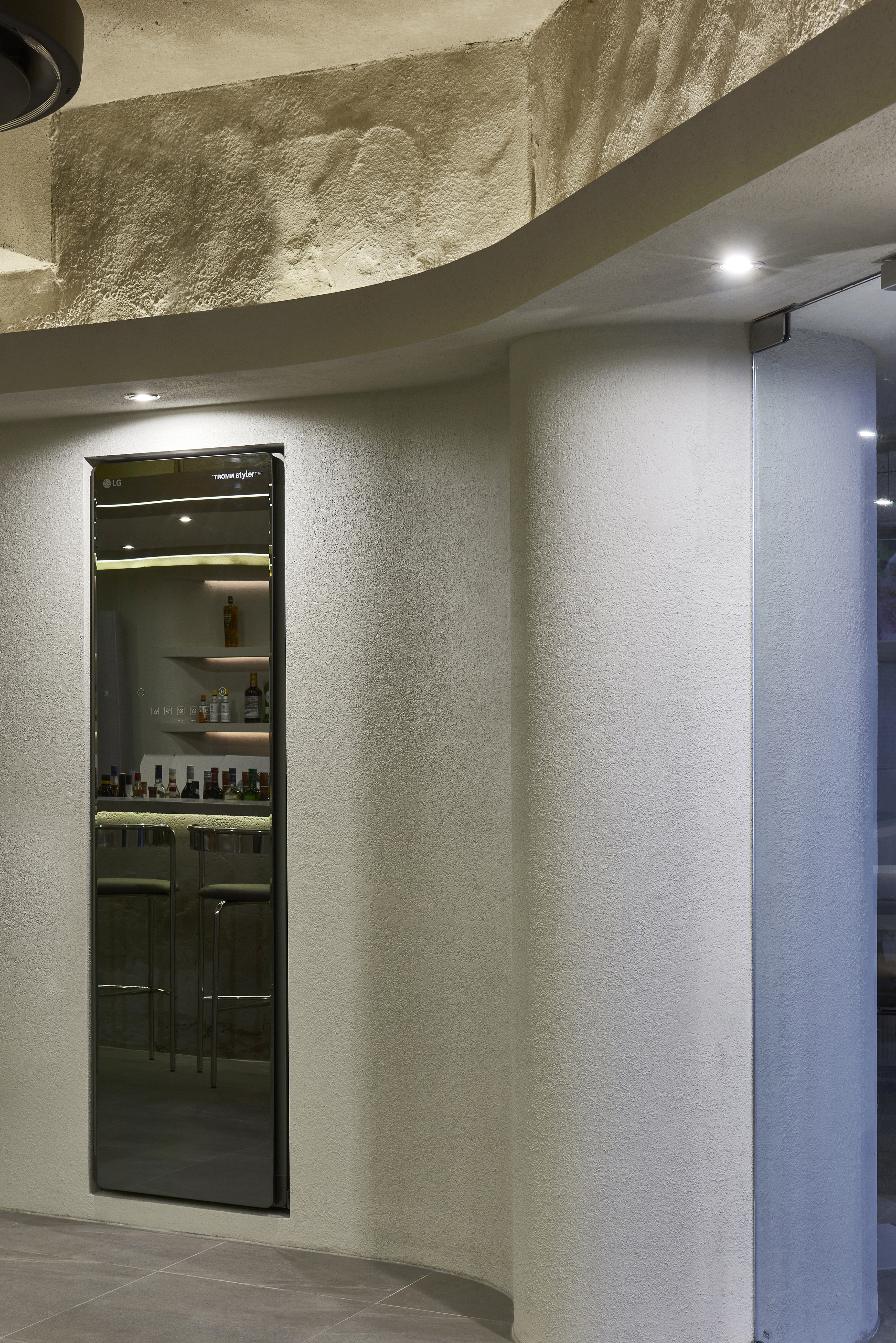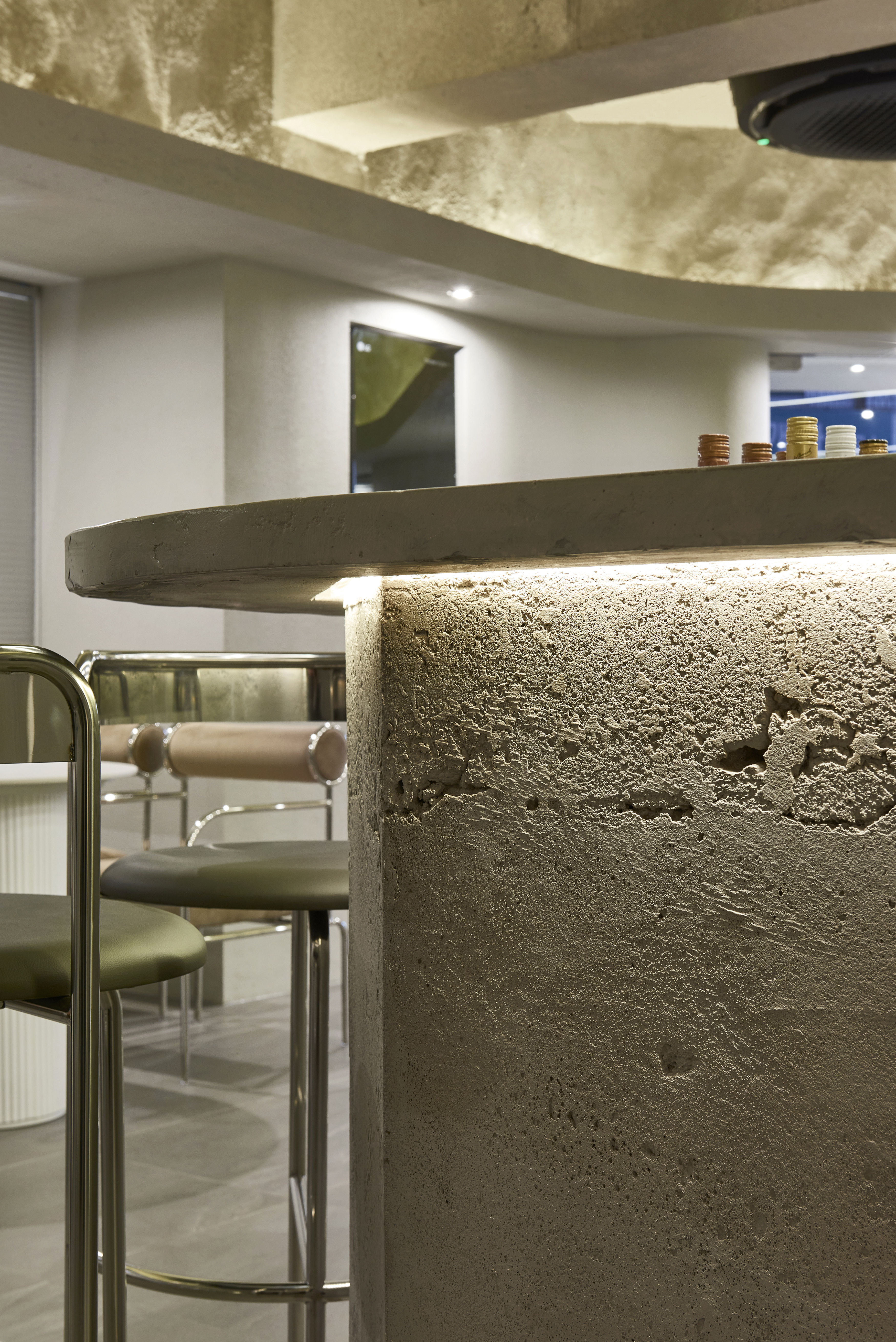 The Stangdal Syndrome refers to mental and physical reactions that feel ecstatic, such as overwhelming and awe, after seeing excellent works of art. Inspired by these mutual meanings, Beaver-lab's interpretation was added to solve the space like a work of art. Rough textures were actively used in the space to give the impression that the artwork was roughly made by hand. Contrary to the rough texture, minimal aesthetics were applied to other spatial elements such as colors, structures, and signboards. Unlike ordinary dark bar stores, the space was created with subtle brightness like a gallery where you can see artworks. The bar counter, which has a lot of time and touch, was interpreted as the most brilliant work in the space of the Standal Syndrome and was created by Beaver-lab.