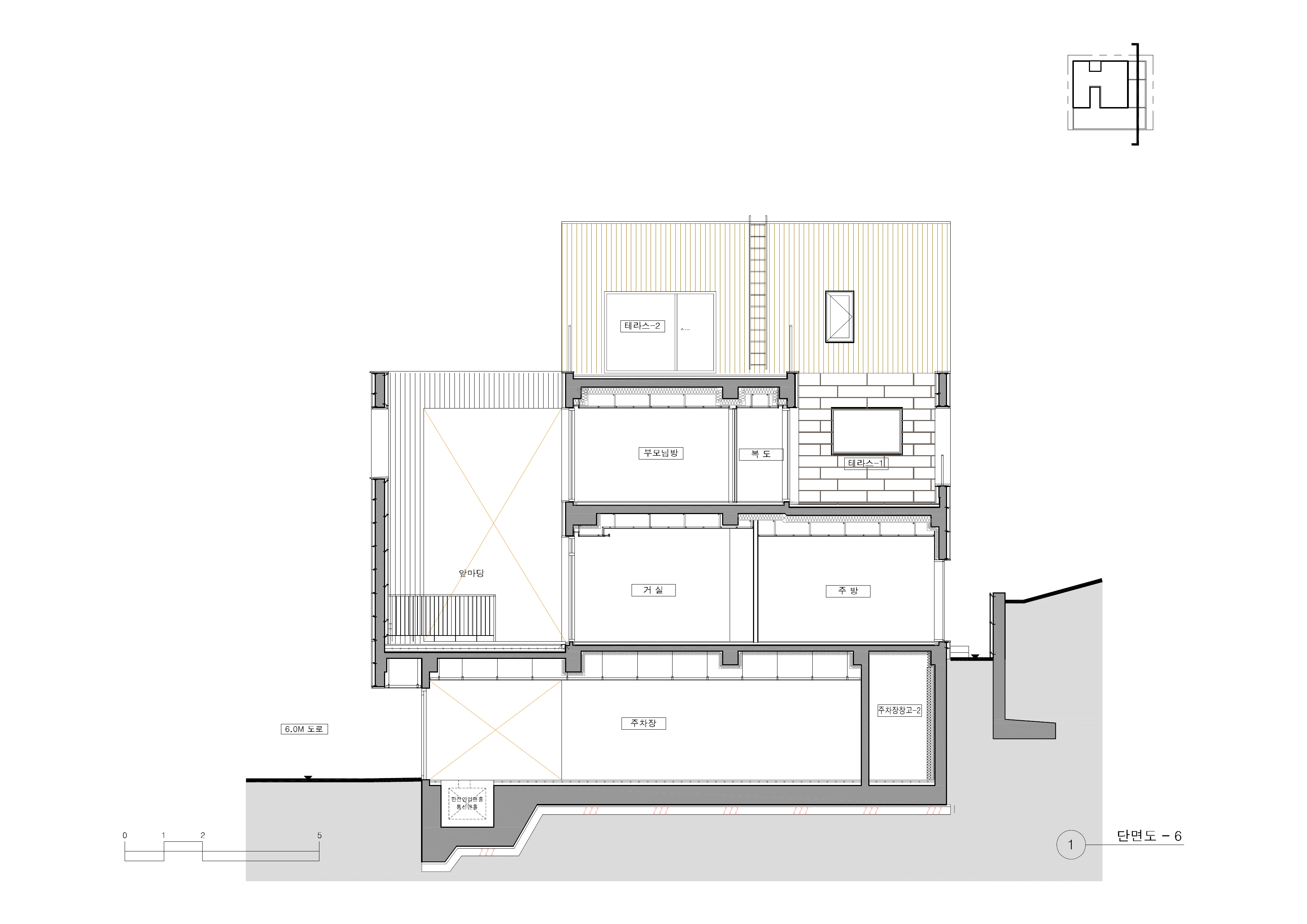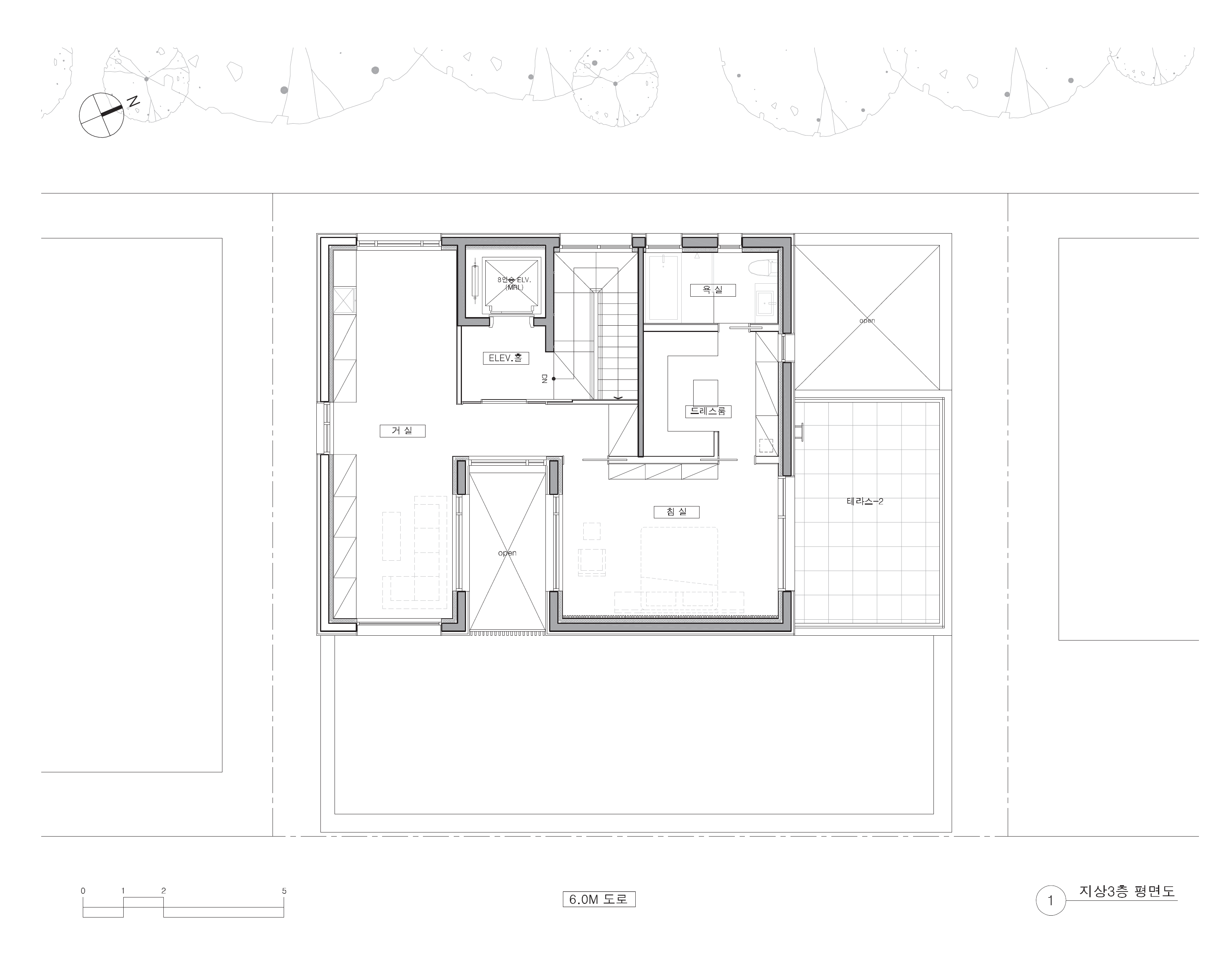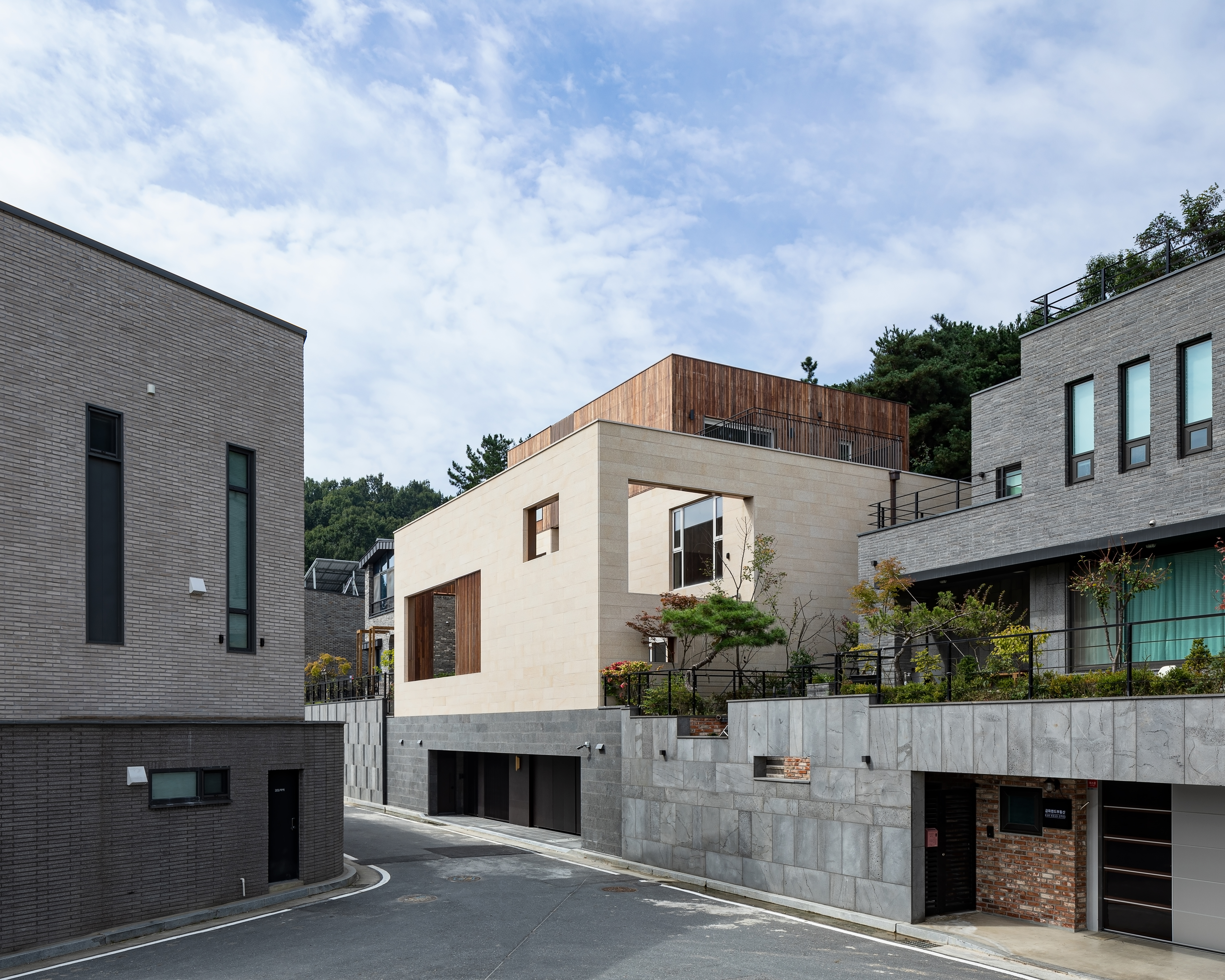 The Sangdae-Dong house in Yuseong-gu, Daejeon, is located in a new detached housing complex with a small garden in the west. The parents and children who lived in the apartment, respectively, merged into this house to form a three-generation family. The client wanted to maintain some of the existing generation-independent life and to do so, the entire space was arranged by continuing meticulous discussions on vertical division and connection.