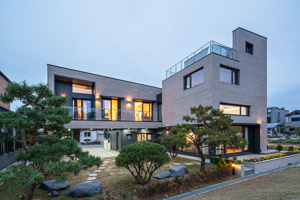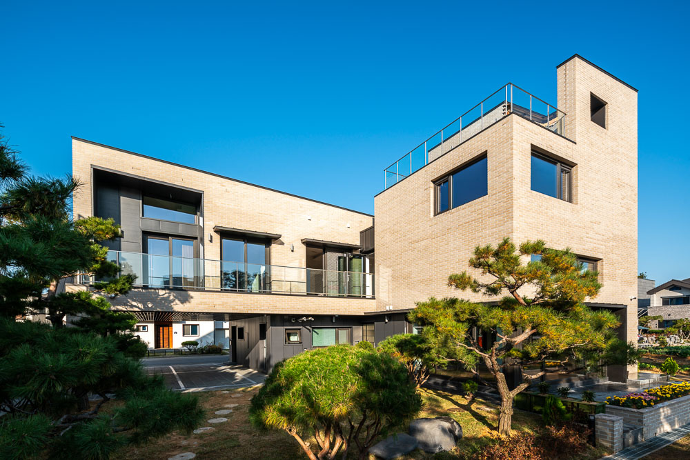 The sculpture of the building symbolically separated the mass of the parents' generation and the son's generation through the inter-space, courtyard, and finished with bricks, minimizing decorative elements with a feeling of well-baked pottery. Bricks are in line with the family's history and capture traces of time. Courtyard invigorates the indoor space and introduces nature to each generation's space in various ways, providing abundance to the space. In order to secure a storage space, an attic space was actively installed and efficient space use was also an important point in the design process by actively utilizing the cross section of the skip floor.