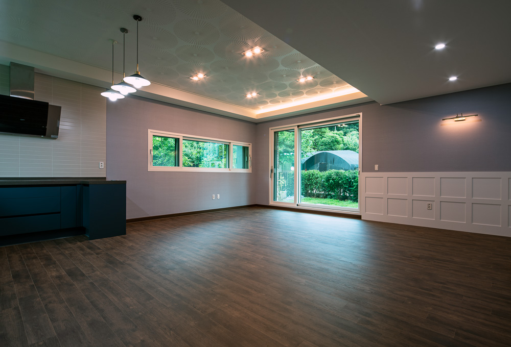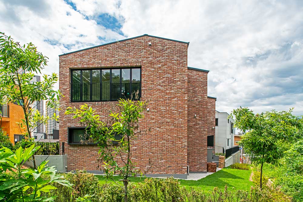 First, materials and shapes were determined by focusing on the surrounding natural environment context of the site. The landscape in the site was planned so that the natural green flow naturally leads to the house. Yeonpungjae, surrounded by Seunghaksan Mountain in the east and north, is also located in the innermost part of the home housing site development district. At the time of the plan, taking advantage of these locational advantages, an open core, which is a passageway through which flows into the center of the building, and separating public and private spaces from left to right. It is planned to create a yard with a medium that contains the surrounding natural environment, and to connect and expand indoor and outdoor spaces. The yard makes you attract nature to Yeonpungjae. It makes people, architecture, and nature live together as one. The inner and outer spaces are connected and expanded visually by always facing nature where the gaze from the inside to the outside is in contact. In the existing sloped topography, stairs were installed in the entrance space of the building to divide the hierarchy of the space, and evergreen shrubs were planted in the front yard in consideration of privacy infringement from the outside. The most attractive space is Porch, which is located in the main room and corridor on the second floor. This space adds to the depth of the connected thread and expands the inner and outer spaces as a neutral space that connects the interior and exterior nature.