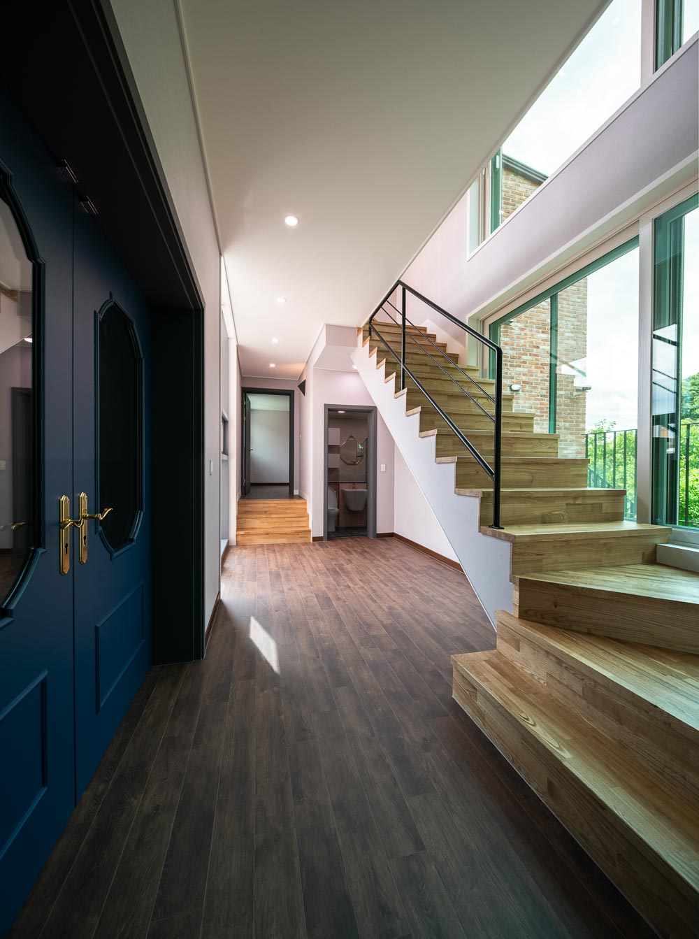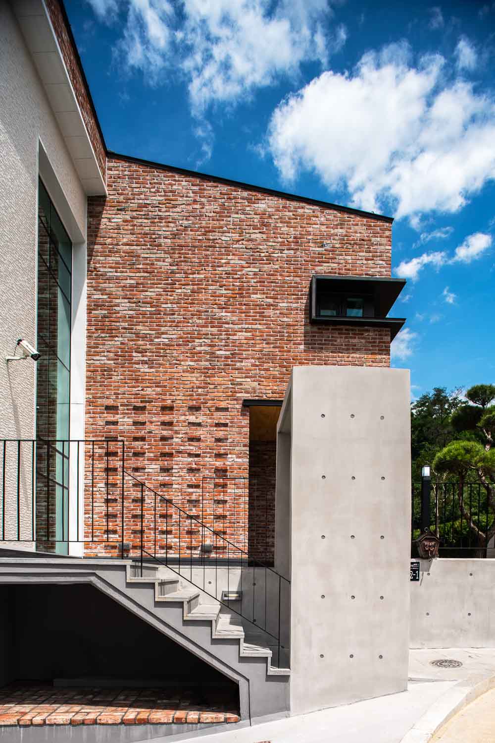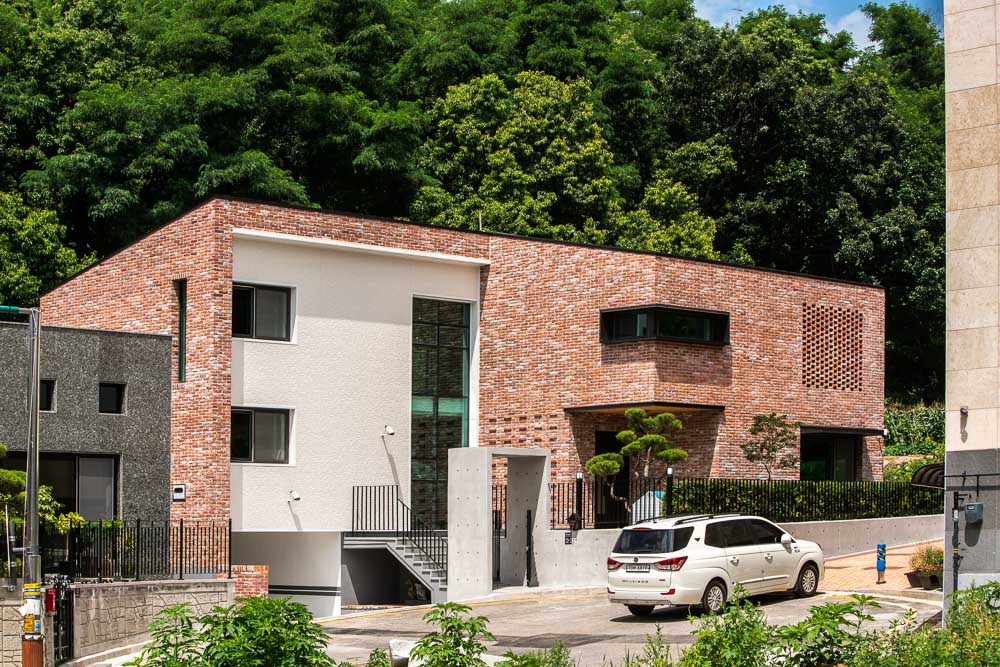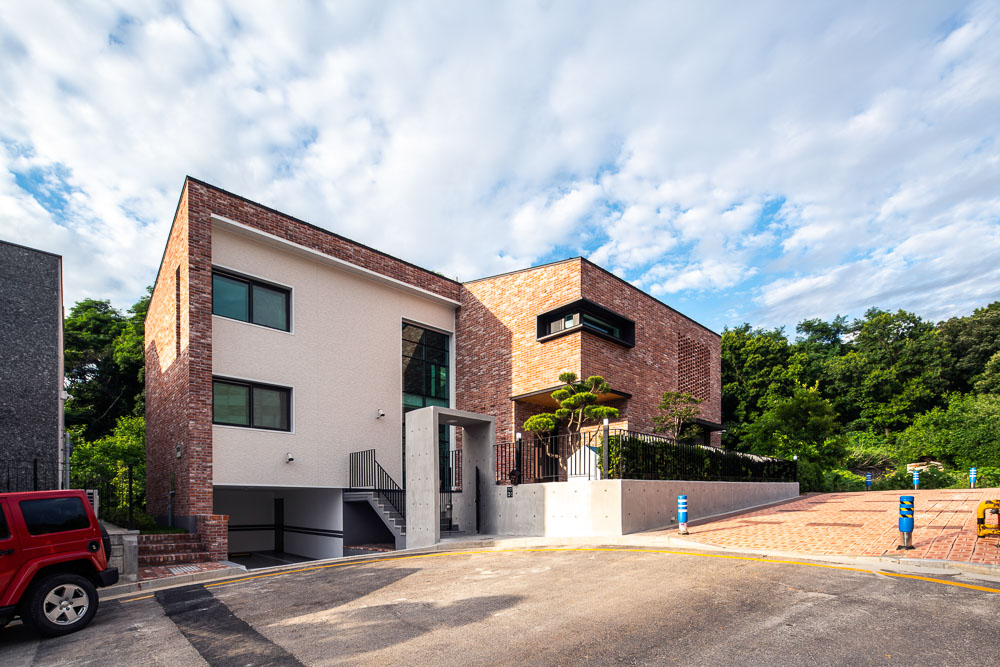 First, materials and shapes were determined by focusing on the surrounding natural environment context of the site. The landscape in the site was planned so that the natural green flow naturally leads to the house. Yeonpungjae, surrounded by Seunghaksan Mountain in the east and north, is also located in the innermost part of the home housing site development district. At the time of the plan, taking advantage of these locational advantages, an open core, which is a passageway through which flows into the center of the building, and separating public and private spaces from left to right. It is planned to create a yard with a medium that contains the surrounding natural environment, and to connect and expand indoor and outdoor spaces. The yard makes you attract nature to Yeonpungjae. It makes people, architecture, and nature live together as one. The inner and outer spaces are connected and expanded visually by always facing nature where the gaze from the inside to the outside is in contact. In the existing sloped topography, stairs were installed in the entrance space of the building to divide the hierarchy of the space, and evergreen shrubs were planted in the front yard in consideration of privacy infringement from the outside. The most attractive space is Porch, which is located in the main room and corridor on the second floor. This space adds to the depth of the connected thread and expands the inner and outer spaces as a neutral space that connects the interior and exterior nature.