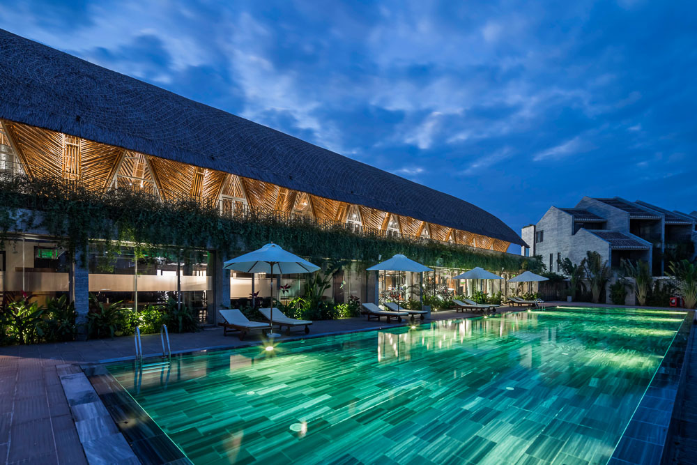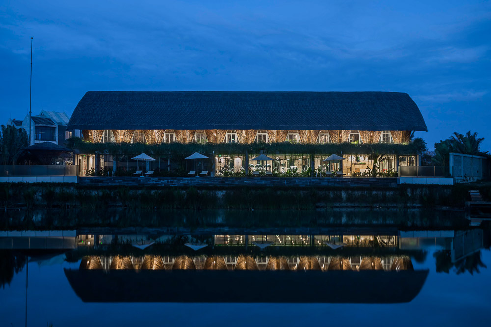 Casamia Community house is located in Cam Thanh, Hoi An city. Inspired by the image of nipa palms from Cam Thanh, the building is erected from bamboo - a material familiar to Vietnamese culture. It is located at the end of a river and gets a lot of wind. Although the building is covered by a lot of greenery, natural sunlight can still get in.
