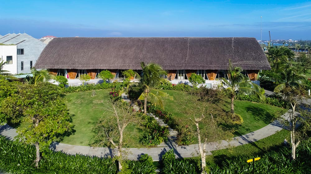 전형적인 아치 천장 구조는 니파야자의 이미지를 묘사하는 동시에 더 긴 스팬에 적합한 구조다. 또한, 수평적인 힘에 저항할 수 있게 하여 베트남 중부에서 발생하는 폭풍과 맞서는 데에 도움이 된다. 철망 층과 결합한 초가지붕은 내부를