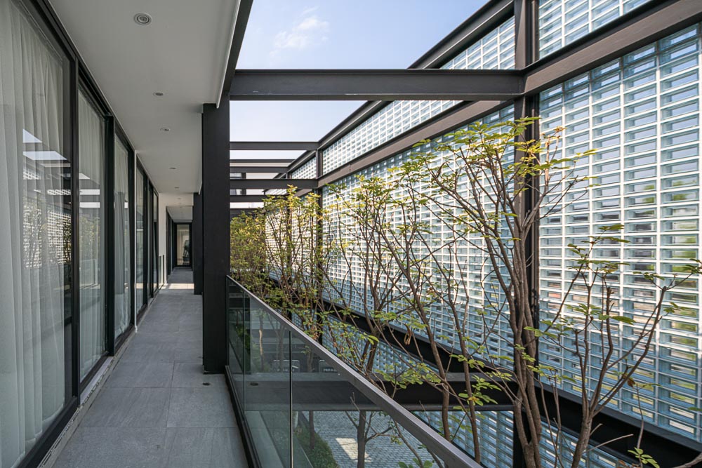 건물이 서쪽을 향해 있어 너무 덥지 않아야 했고, ‘유리블록’ 프로젝트에는 자연채광을 받아들일 공간이 필요했다. ‘유리블록’은 자연채광이 들어오게 하면서 여러 이슈를 해결할 수 있어 주 재료로 선택되었다. 유리블록 내의 식물은 너무 덥지 않은 온도와 빛이 필요했고, 건축주가 원했던 것처럼 오후에는 건물이 햇빛을 반사해 반짝이며 눈에 띈다. 이 프로젝트의 디자인은 새로운 실험이면서 창의적인 아이디어를 중요한 문제와 연결해 건축주가 원하는 것을 함께 해결하는 시도였다.