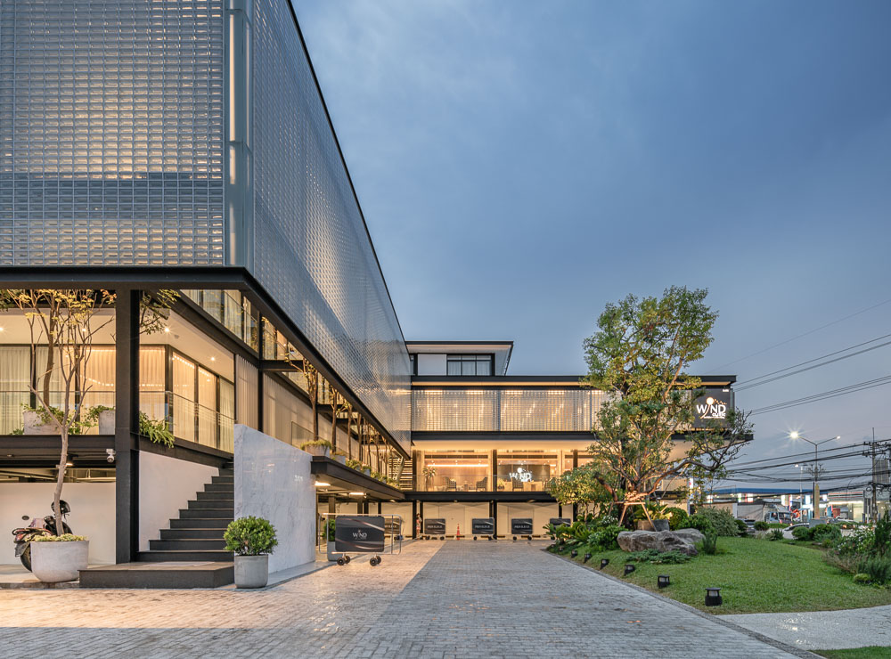 윈드 클리닉은 태국 우본라차타니주 시내에 있는 뷰티클리닉이다. 철골구조로 설계된 이 프로젝트에서 강철은 주요 구조이며, 파사드 유리블록은 가장 중요한 재료다. 건축주인 Dr. Bas는 교차로를 지나가는 사람들의 시선을 사로잡을 만한 건물을 원했다.