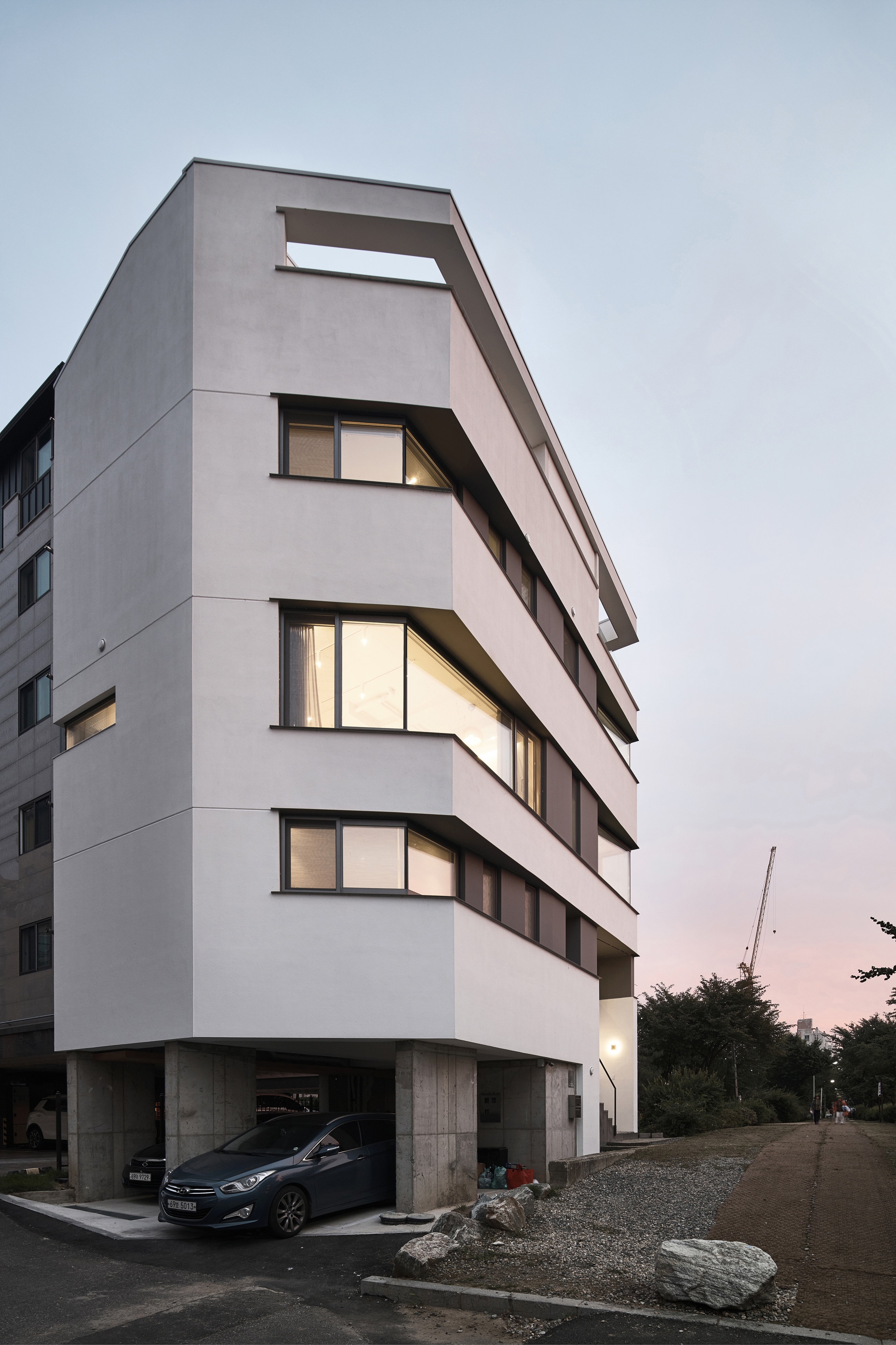 Mojo House is a duplex house on small site for two families. It has advantages of using the ecological park of the front side as a front yard and could overlook Bukhan-river in 3, 4th floor height...