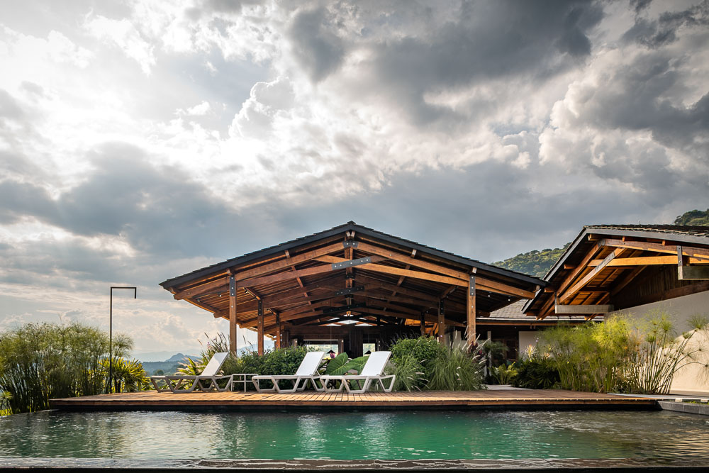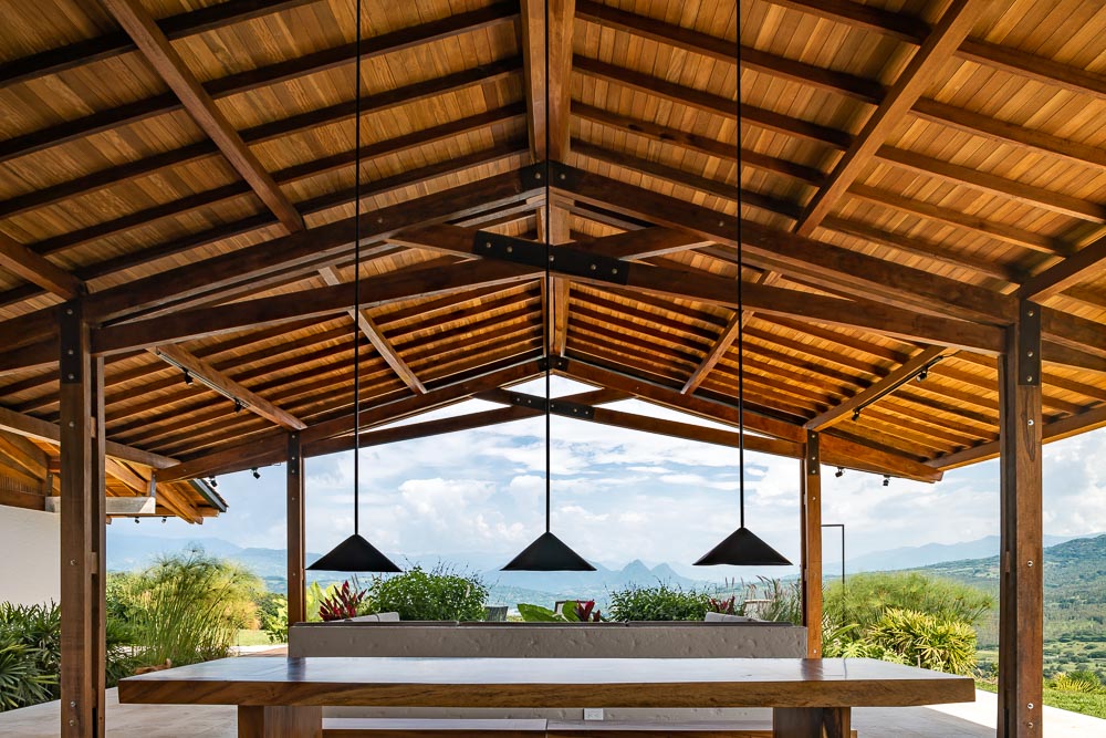 Finally, the social area of the house is configured with the strictly necessary elements: a large elongated dining table and a u-shaped unit in masonry that serves as a room open to the landscape and that in turn precedes the area of the pool. This one, built in natural black slate, seeks to contrast strongly with the deck, also in wood, and give the greatest feeling of naturalness possible. Thus, the visitor remains here in an open space surrounded by plants, giving way to one of the most important geographical landmarks in the region: Los farallones de la pintada.