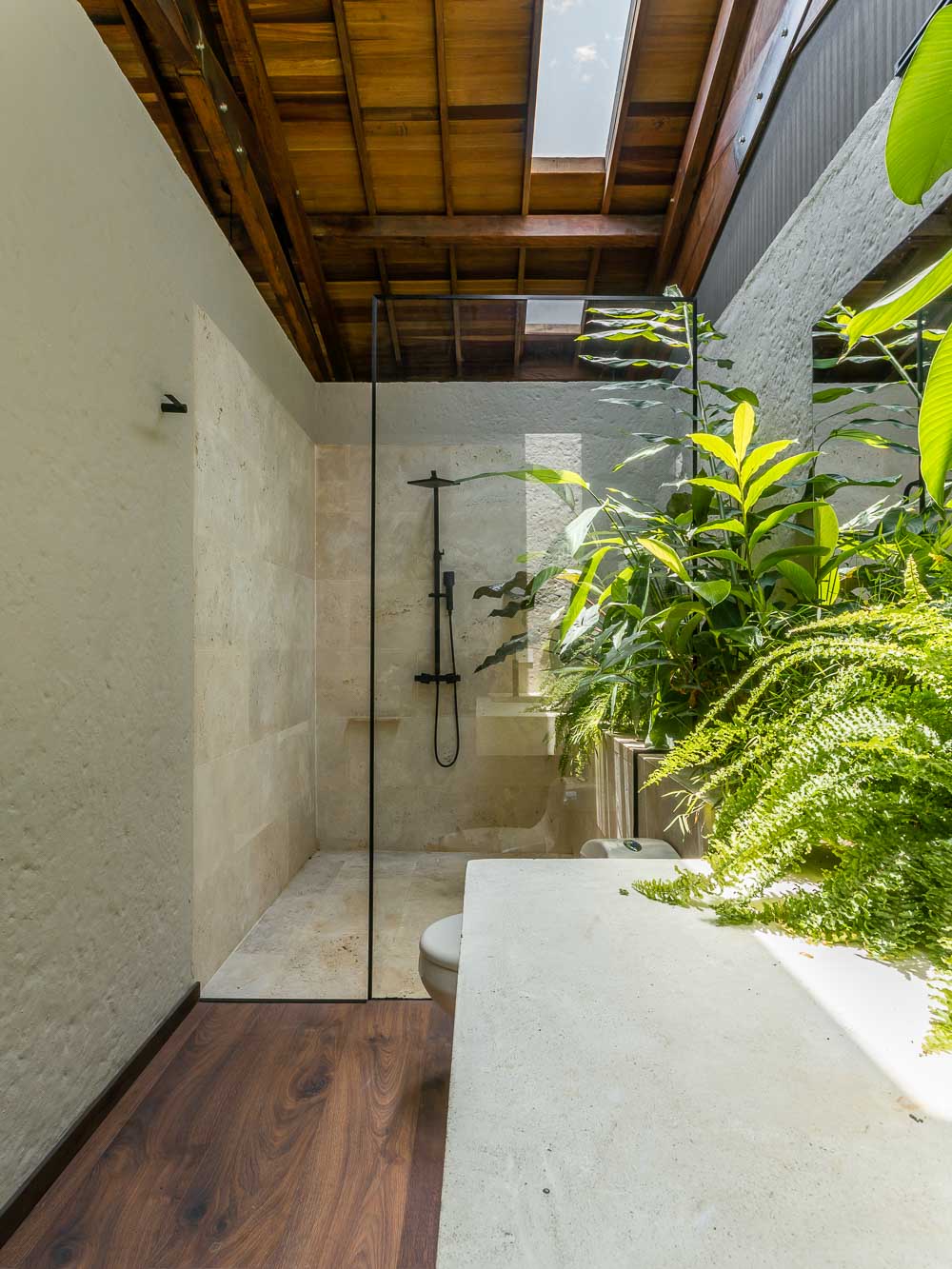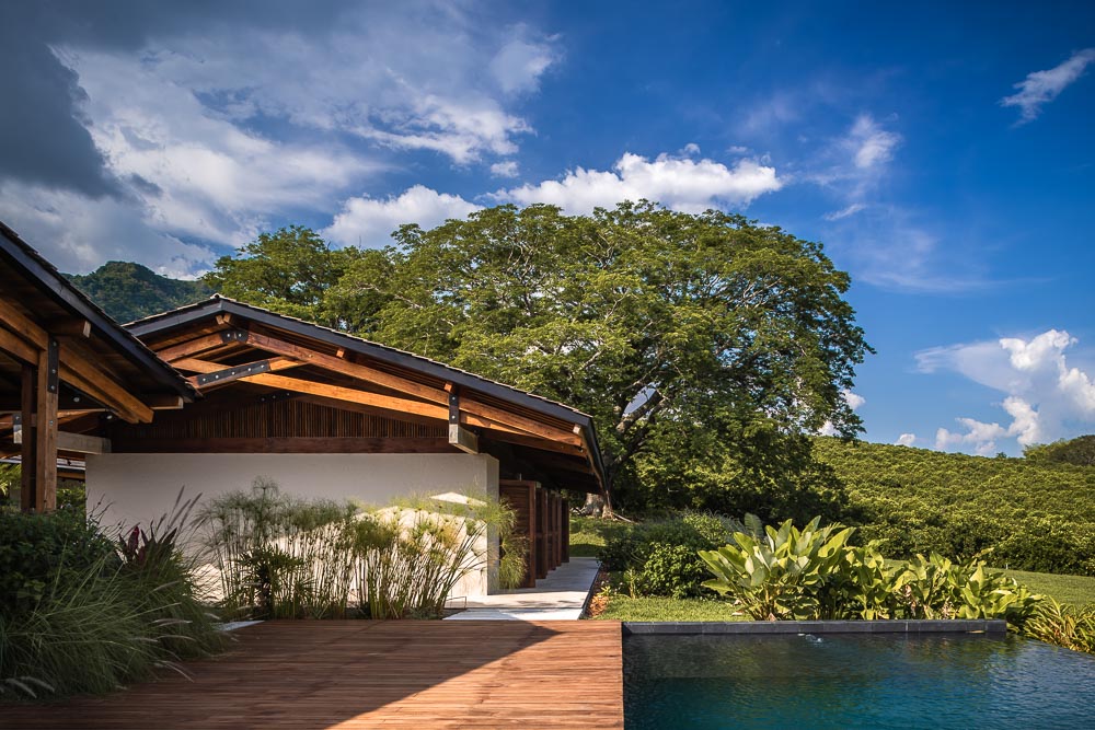 The details and specifications finish giving the house a certain sense of austerity mixed with a constant presence of tropical vegetation. The landscape design proposes intermingling and naturalness as well as points of color and areas of shadows suitable for the place and the occasion.