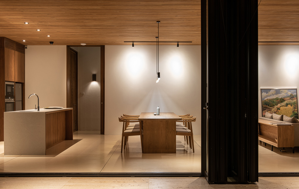 Overlooking a scenic landscape near the foot of the mountain and just 20minutes drive from the city, this vacation house for a family of three was stretched from north to south across the plot to let the view soak into every room and defined the private garden and swimming pool to the west and parking area with a small garden to the east of the house.