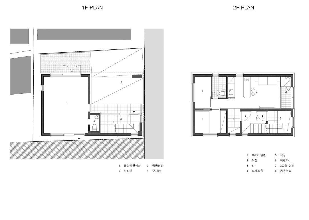 Cotton House is a multi-family housing built in a residential area in Myeonmok-dong, Seoul, where single-story houses and two-story houses are mixed and neatly arranged along the north and south roads. In Myeonmok-dong’s residential area, the old houses were one by one passing over their batons to multi-family/multi-household housings with three or four stories, and consequently, the landscape of the neighborhood and the atmosphere of the street were also gradually changing. In the changing city, Myeonmok-dong Cotton House forms a new relationship with the existing street while satisfying the legal floor space index permitted in a small site and maximizing the volume and density of the building.