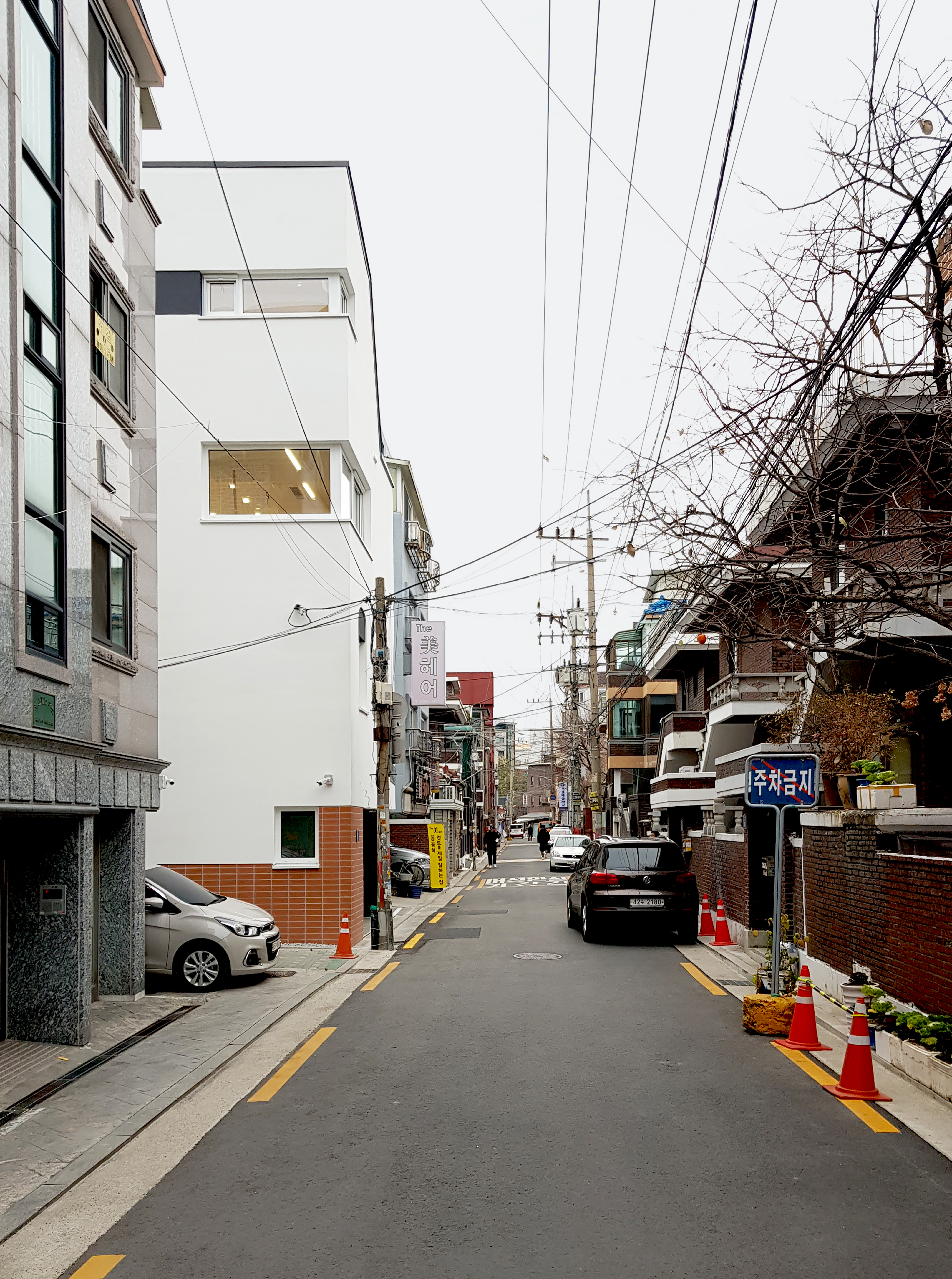 Cotton House is a multi-family housing built in a residential area in Myeonmok-dong, Seoul, where single-story houses and two-story houses are mixed and neatly arranged along the north and south roads. In Myeonmok-dong’s residential area, the old houses were one by one passing over their batons to multi-family/multi-household housings with three or four stories, and consequently, the landscape of the neighborhood and the atmosphere of the street were also gradually changing. In the changing city, Myeonmok-dong Cotton House forms a new relationship with the existing street while satisfying the legal floor space index permitted in a small site and maximizing the volume and density of the building.