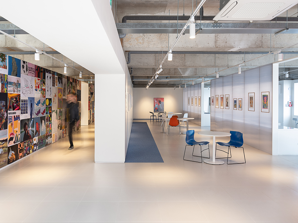 내부공간은 카페, 전시공간, 디자인 편집숍, 실내관람석 등 다양한 프로그램을 담아내는 복합문화공간으로서 전통적 전시방식인 화이트 큐브의 기본적인 요소인 ‘흰 벽’의 반복적인 사용과 재료의 변화를 통해 계획되었다. 내부공간은 흰 벽으로 이루어진 미로와 같이 설계되어 석고보드, 폴리카보네이트, 선반, 유리 등 질감을 가지는 다양한 흰벽들로 구성되어 있으며, 이 벽들은 다양한 작가들의 작품들을 위한 전시홀, 캔버스, 선반으로 구성되어 여러 가지 행위들을 담아낼 수 있는 공간으로 계획되었다.관람객들은 이 공간을 거닐며 벽들 사이의 개구부를 통해 바다, 항구, 산업의 풍경들을 점진적으로 경험하고, 이러한 경험을 통해 관람객, 작가, 예술품의 관계를 새로운 방식으로 기억하게 된다.