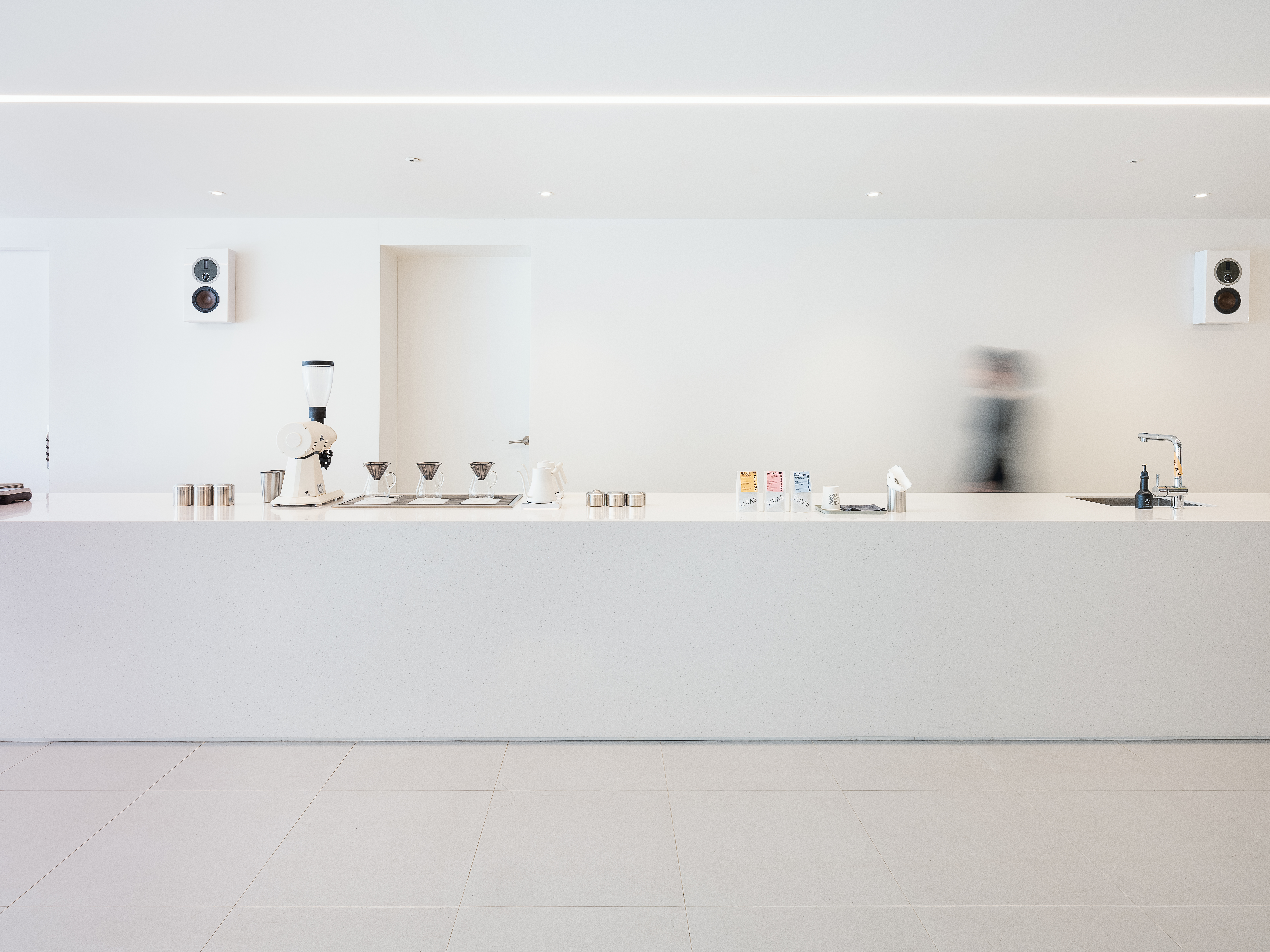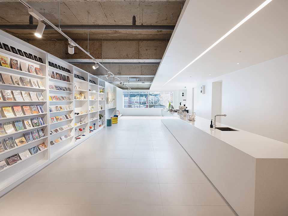 Scrab is a gallery cafe located in Yeongdo, the southern edge of Busan, with a unique industrial landscape that changes every moment. The interior space is a complex cultural space that contains various programs such as cafes, exhibition spaces, design editing shops, and indoor viewing seats, and was planned through repeated use of the white wall, which is the basic element of the traditional exhibition method. The interior space is designed like a maze of white walls, and consists of various textured white walls such as gypsum boards, polycarbonates, shelves, and glass, which are designed to feature exhibition halls, canvases, and shelves for various artists.Visitors walk through this space and gradually experience the sea, ports, and industrial landscapes through the openings between the walls, and through this experience, they remember the relationship between visitors, writers, and artworks in a new way.