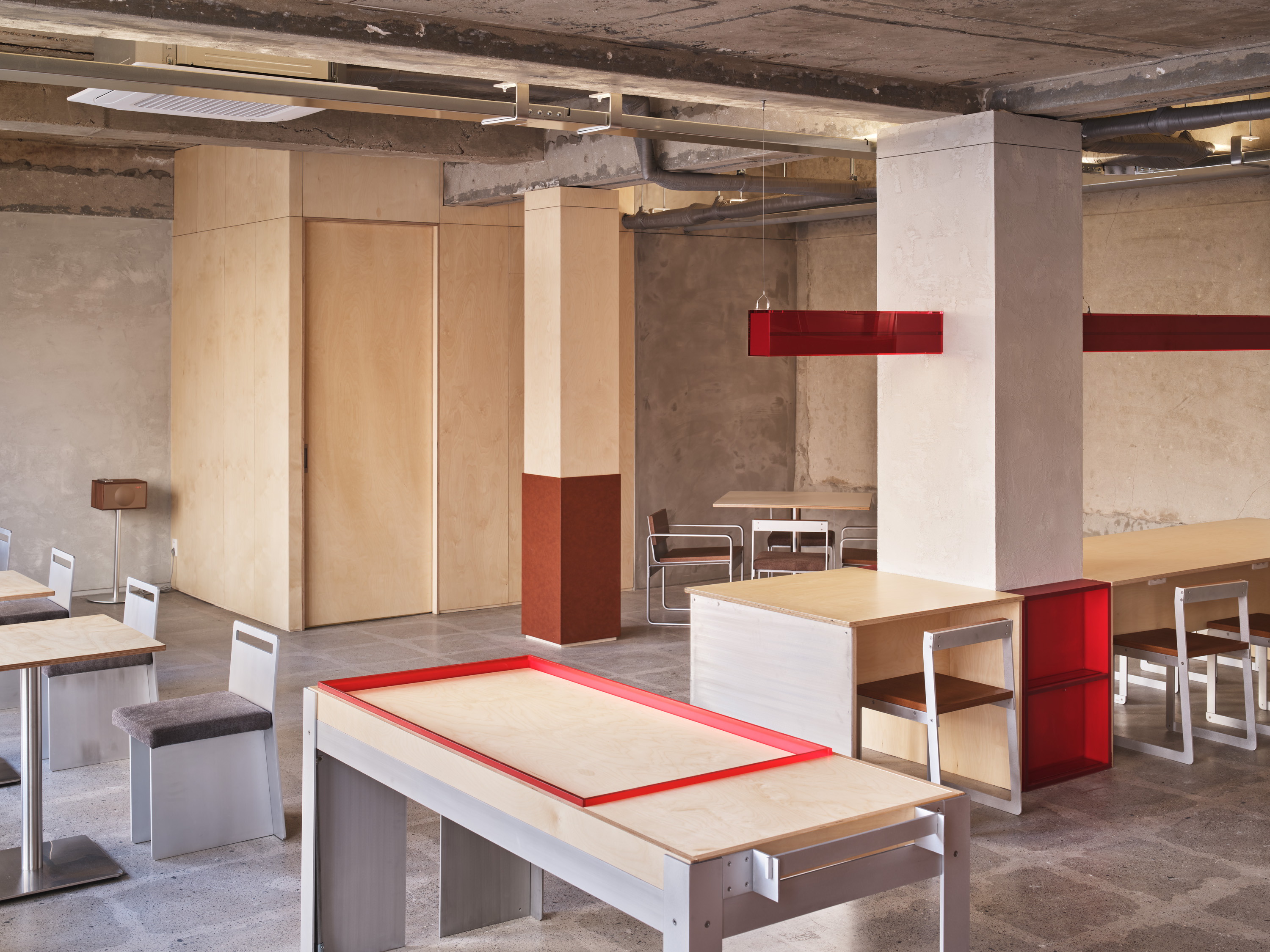 내부는 여유로운 배치, 인위적인 장식을 최대한 배제하며 간결한 형태와 물성이 가지는 자연스러운 변화가 느껴지는 공간을 표현하려 했다. 따뜻한 우드와 금속이 가지는 정교한 라인에서 느껴지는 시각적인 편안함과 함께 시크함을 동시에 주어 양면적이면서 조화로운 공간 분위기를 연출했고, 레드컬러 포인트의 아크릴조명과 수납장, 의자와 벤치 및 베이커리 쇼케이스, 하물며 사소한 전기회로가 지나가는 레이스웨이(전기설비라인)까지 공간과 유기적인 관계형성이 되게 제작하여 힙한 감성과 로컬의 주민들을 위한 과거 오래전부터 장소가 가지고 있는 익숙함과 편안함이 공존하도록 했다. 외부는 오래된 상가주택의 적벽돌과 어우러지면서 가로로 긴 직사각형의 공간이 가지는 파사드의 확장감이 느껴지도록 정갈한 형태와 시간이 지날수록 깊이감이 더해지는 우드와 금속소재로 시각적인 분리가 되어 보이게 마감했다.