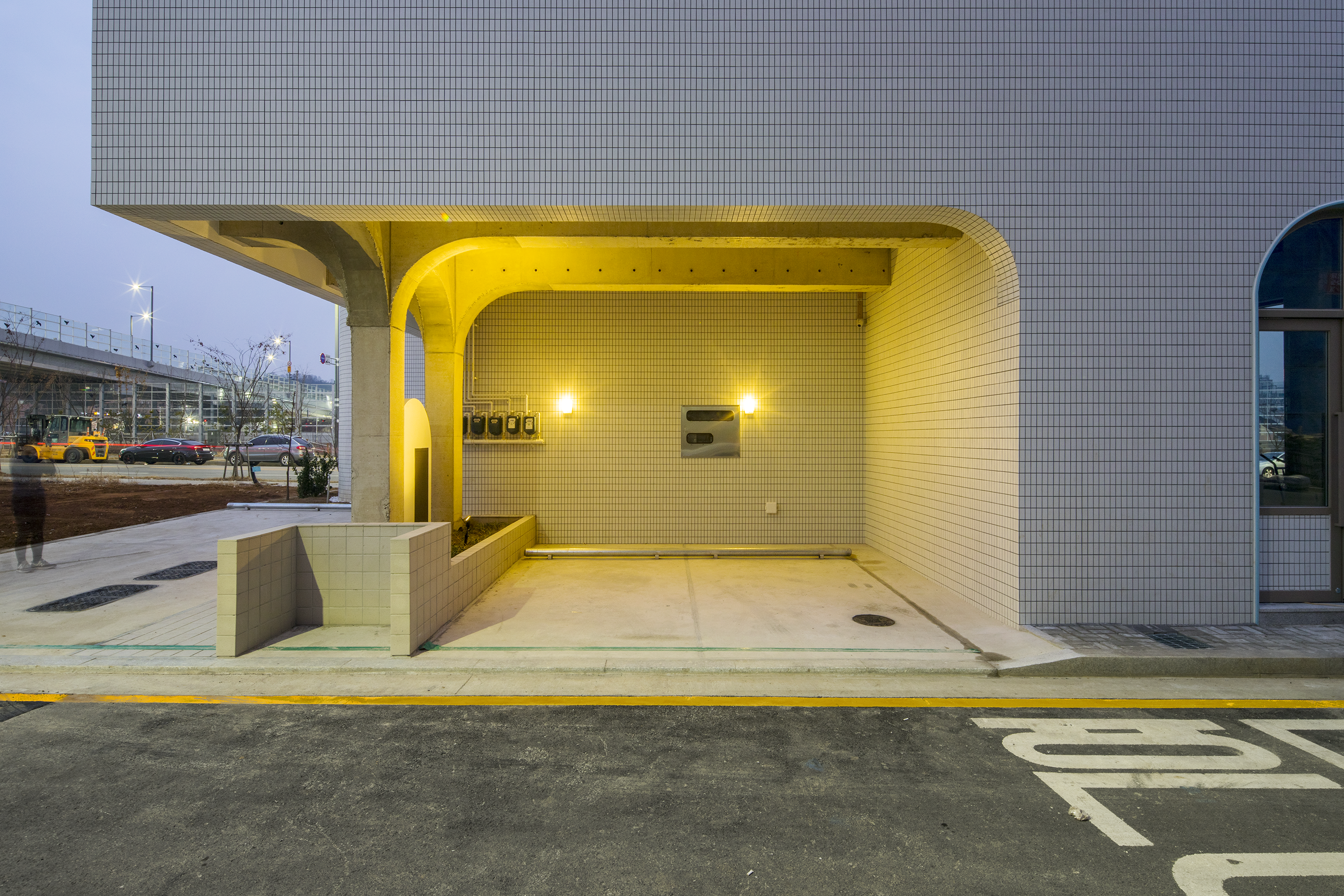 Hoped it to be a building which could remind of the curves of wave and twinkling stars which are being reflected to the water on the corner plot overlooking Seojeongri stream. We imagined of an empty building like a drawing paper which could add a little bit of composure to the completed landscape of the city. The building which has imagined and planned in that way has completed as a white mass emphasizing its curved surface. As the plot goes up, it draws different curved lines and forms the terrace of each level and the curved forms are being emphasized by overlapping each other. The building which every side has well revealed, as 3 sides of it face with the road, changes based on the direction of looking at the building and has characteristic images by each side.