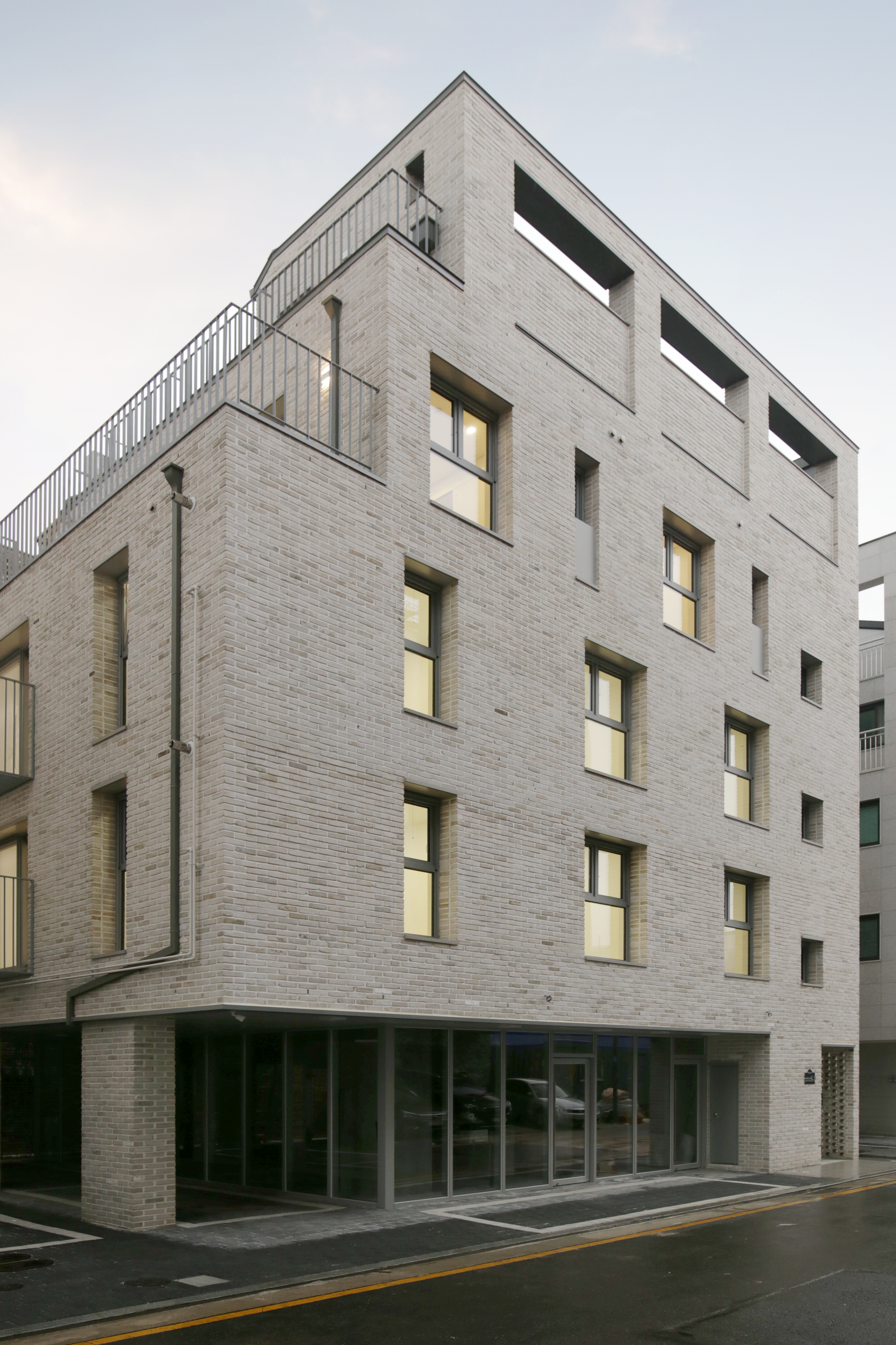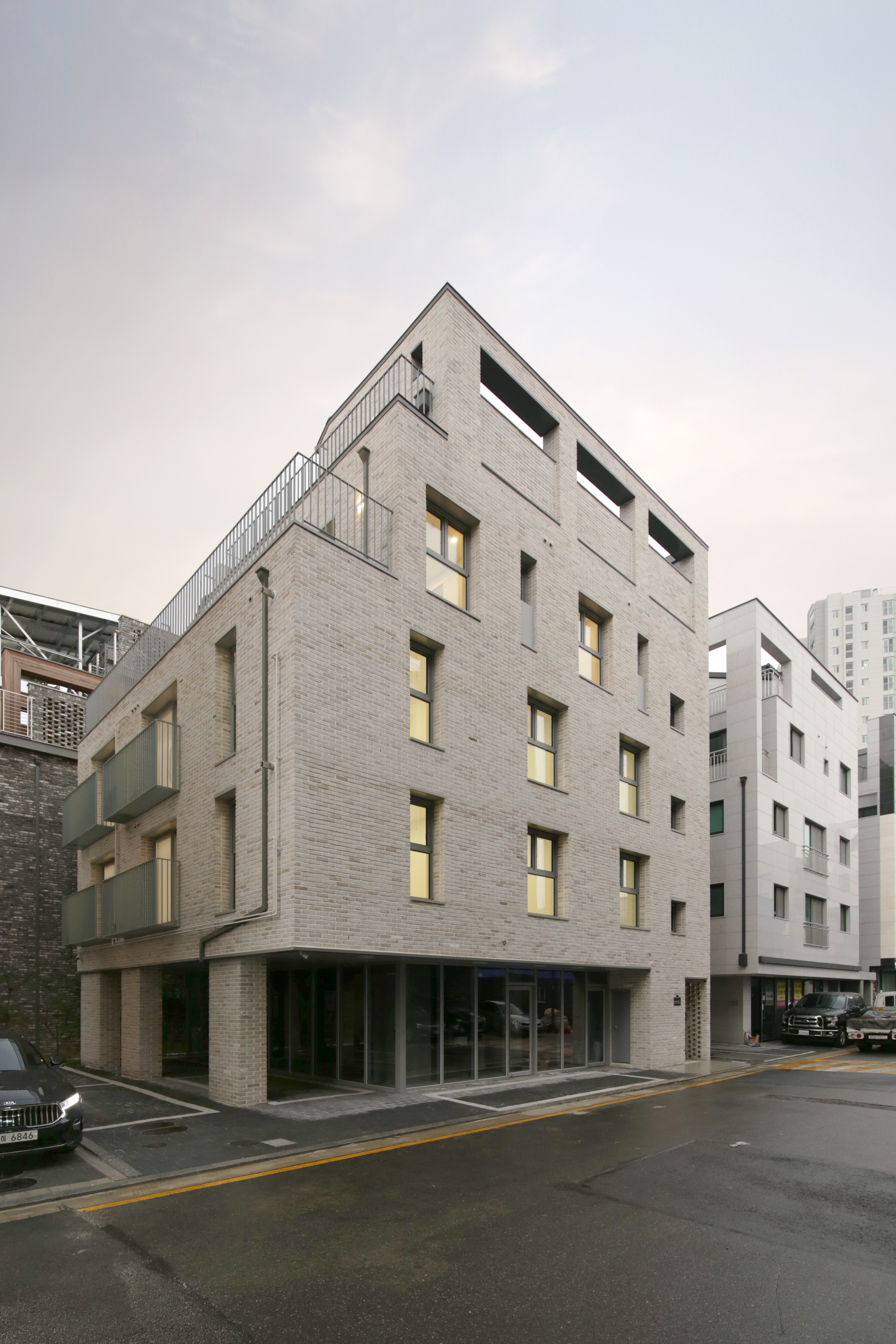 The MW-Housing in Mangwol-dong is a multi-family house with a mass of homogeneous and detail form. The client didn’t want to live in the multi-family house which has a similar look with surroundings at that place. And he had a sense of rejection of multi-family housing that looked similar to surroundings of building. For this reason, the building is a residential space that breaks away from the ordinary image of multi-family housing building; It is impossible to guess the composition of interior space by design of exterior walls and windows. The building rejects the type, size, and combination of windows that have been used in multi-family homes, and reveals ‘the evenness which couldn’t be divided by functions’.