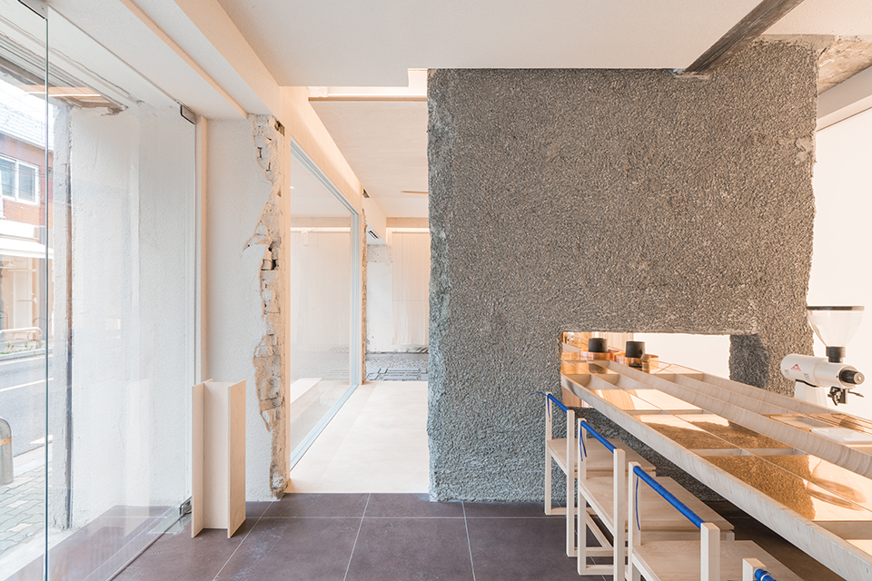 The first floor, where there were three different shops, is divided into a space for information and packaging, a space for tea brewing, and a space for coffee brewing. The three spaces designed using the existing space configuration have different finishing materials and space configurations and continue the context of the telephoto building consisting of small stores. The long table in the center, which was reinterpreted by Eert's Garethans, serves to connect three different spaces. The wall lighting behind the table allows customers to focus on the act of making coffee and tea, enabling new experiences. This light illuminates the traces of existing space and new elements, while illuminating the streets and attracting people's attention.