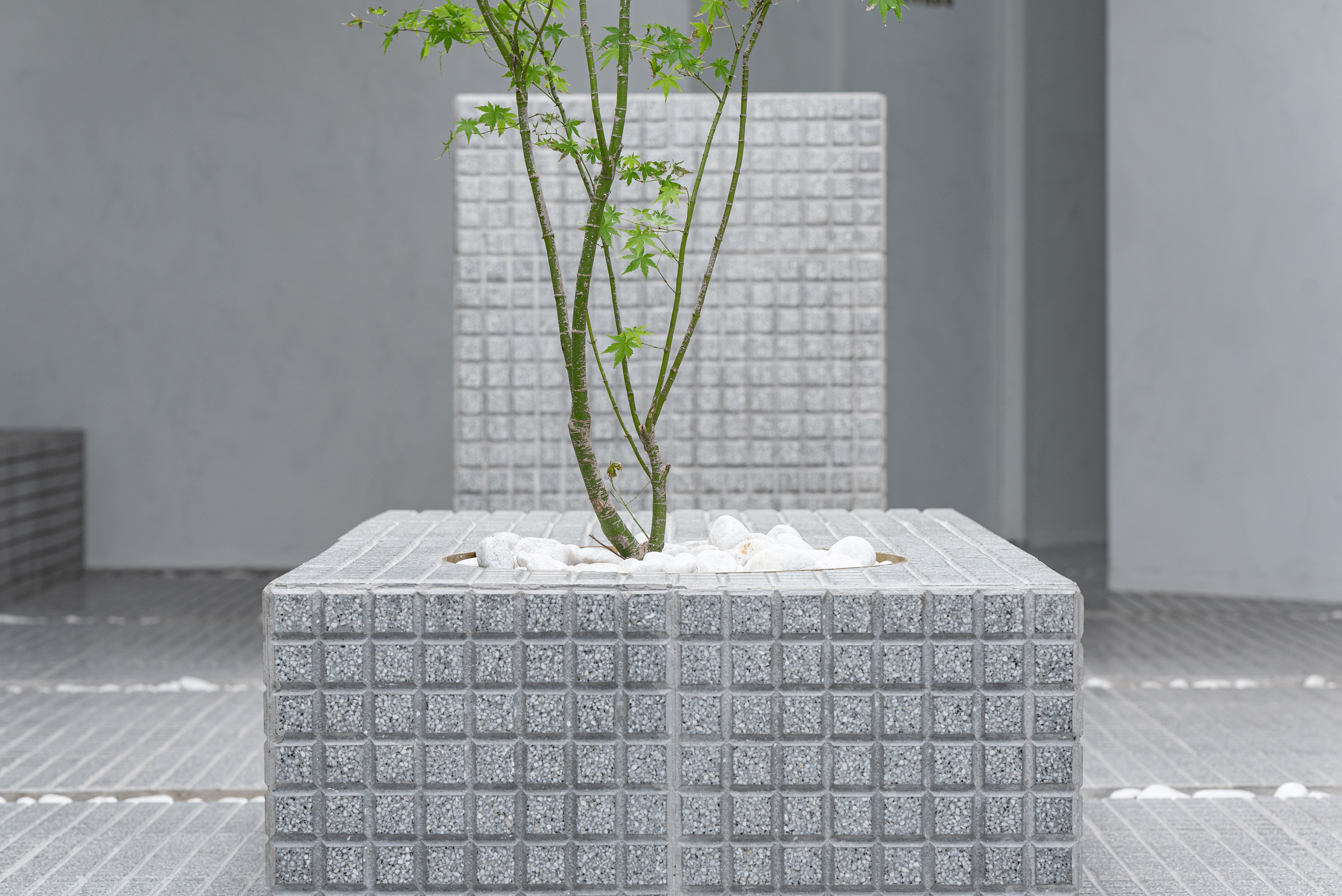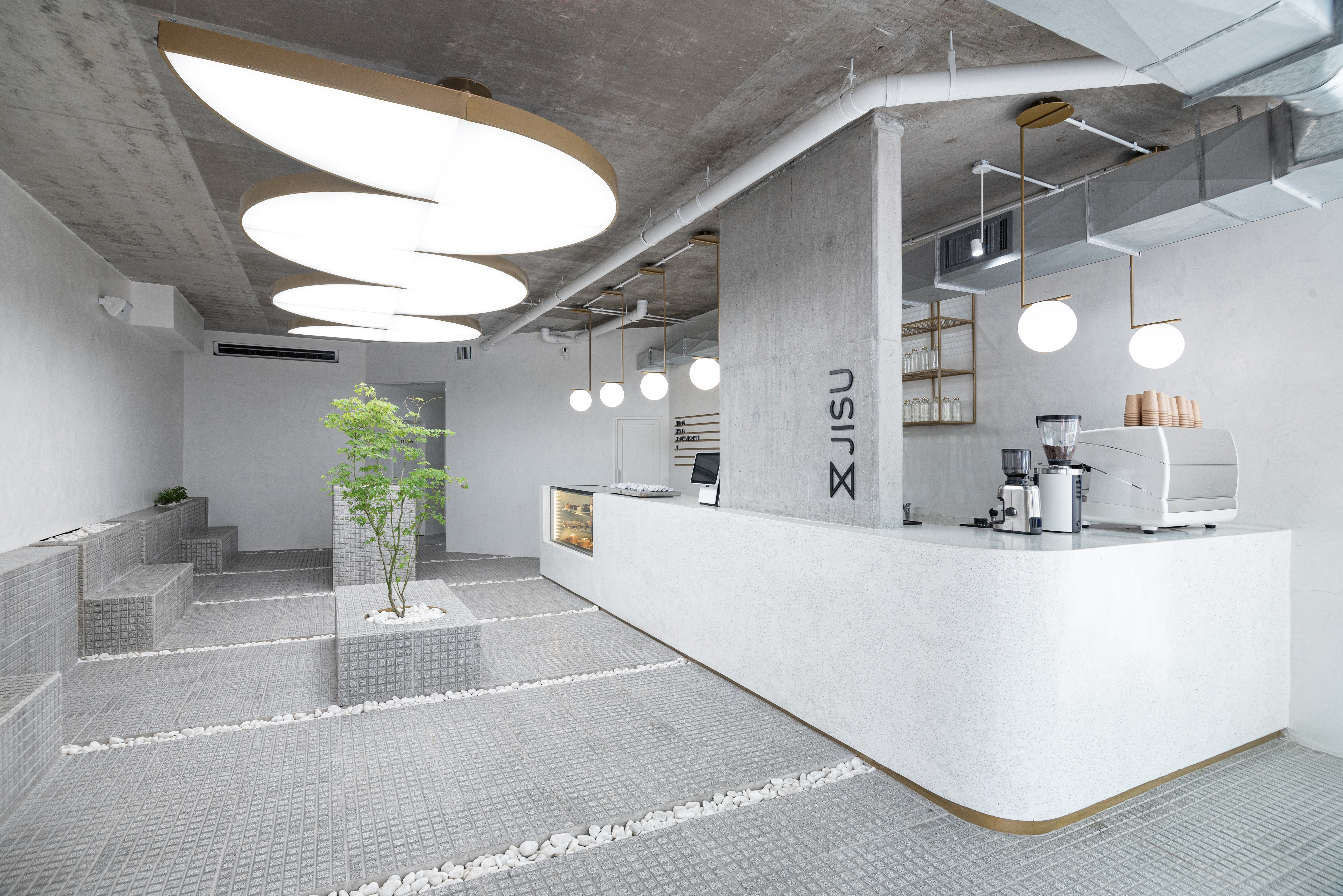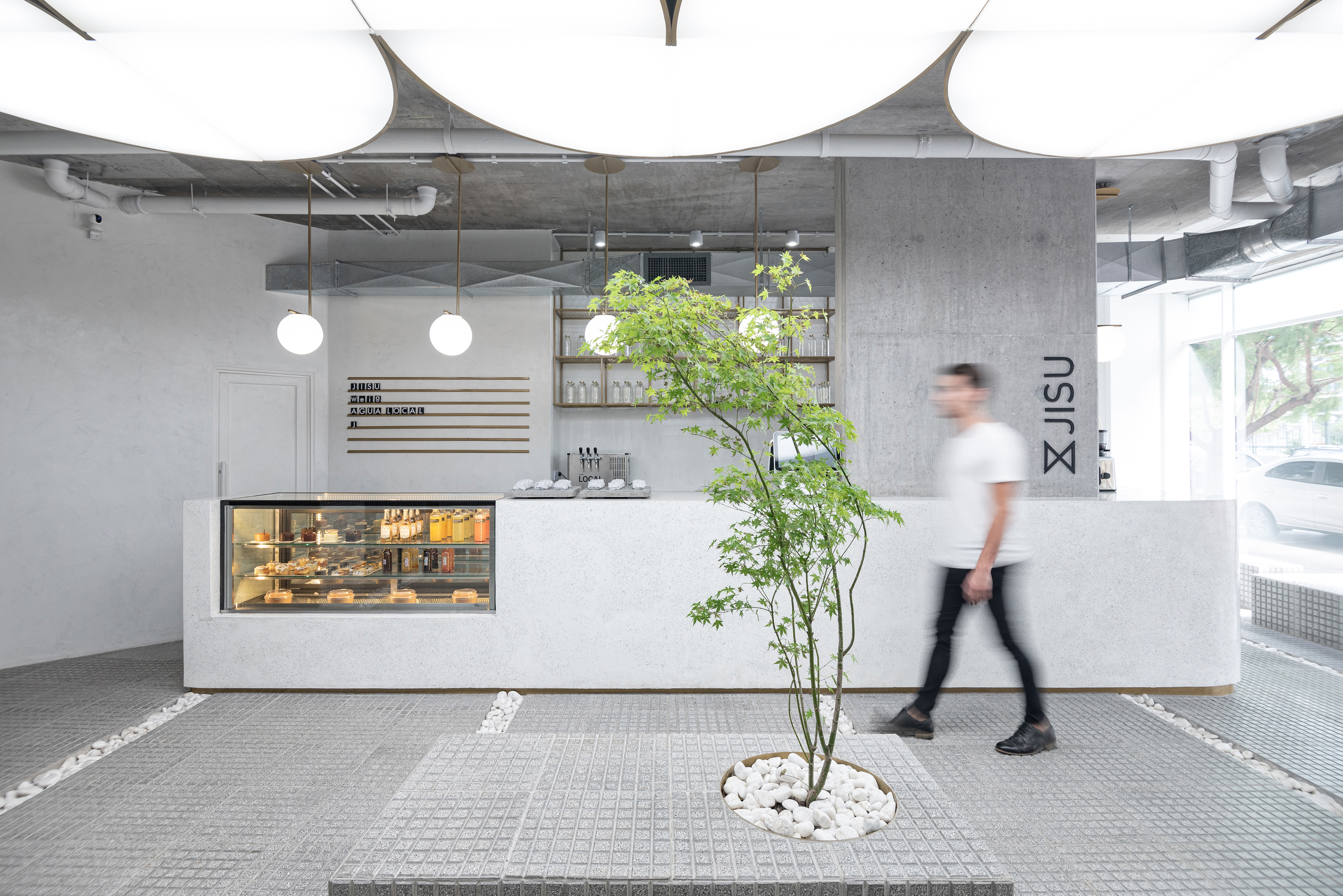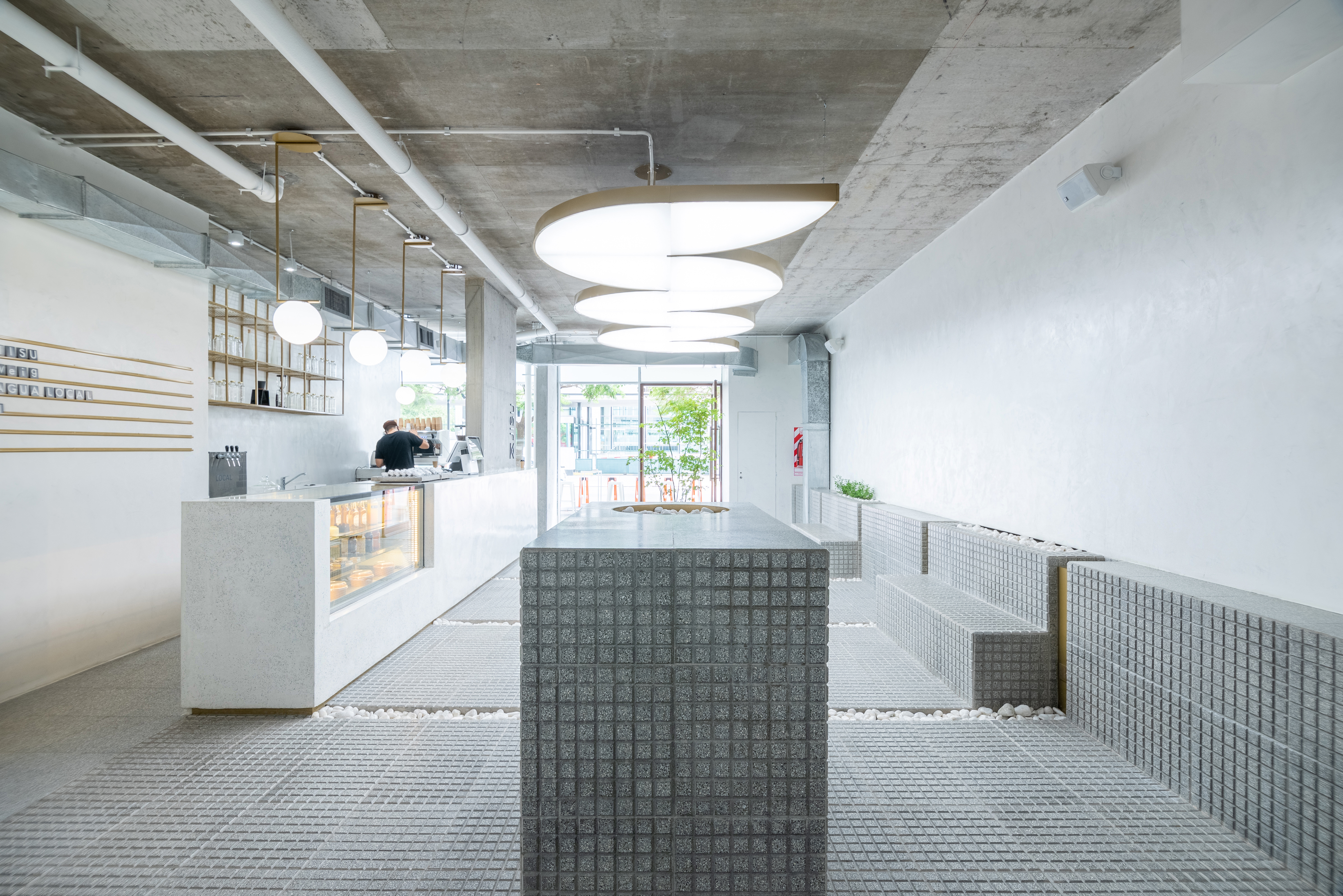 The project was designed as a single space with quickly perceived simple lines, with pure geometries in harmony with neutral tones, stone materials, specific vegetation, and a central sculptural piece as the main lighting element. It was developed alluding to the squares of Buenos Aires, where some elements of the national and eastern culture merge with the aroma of coffee.