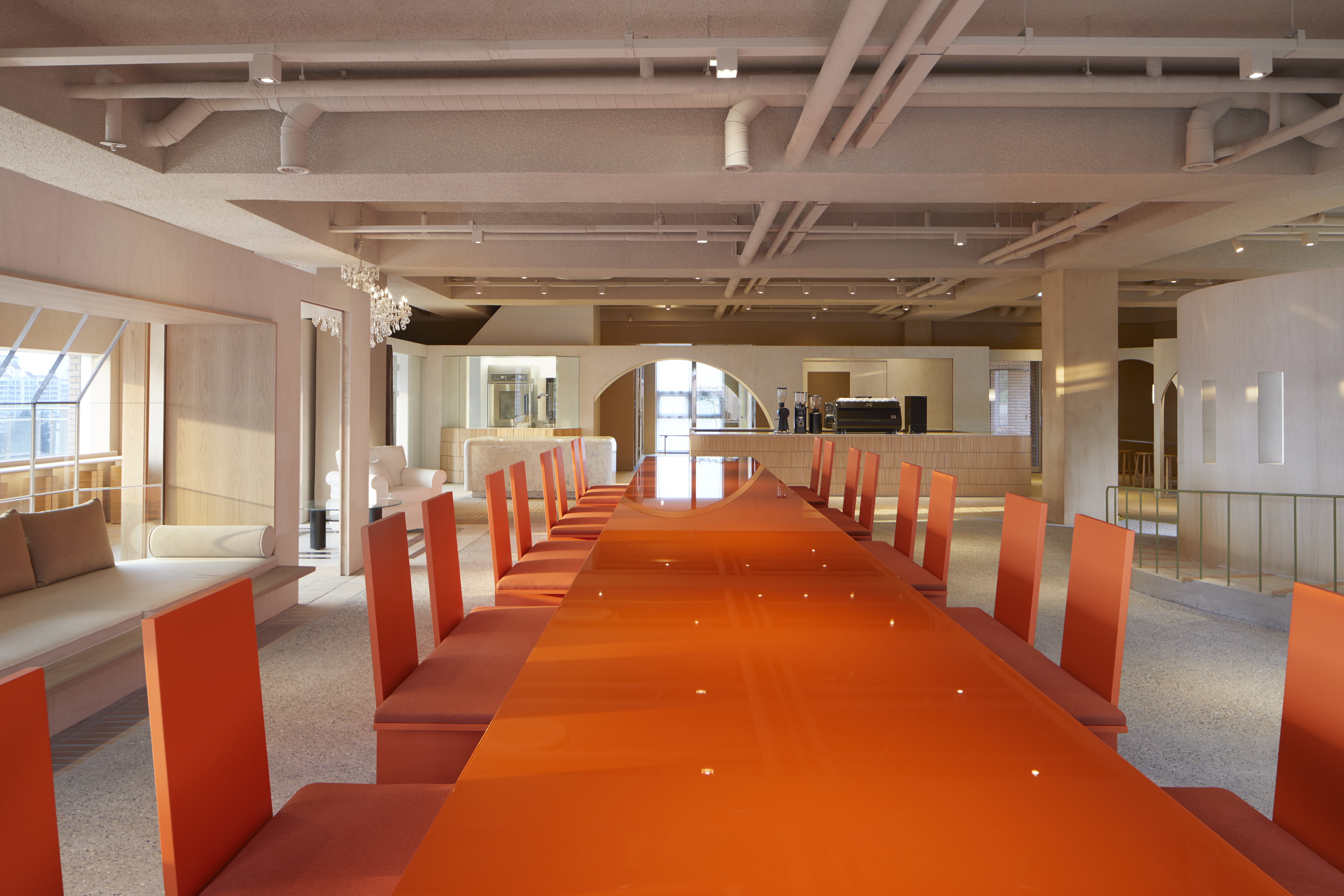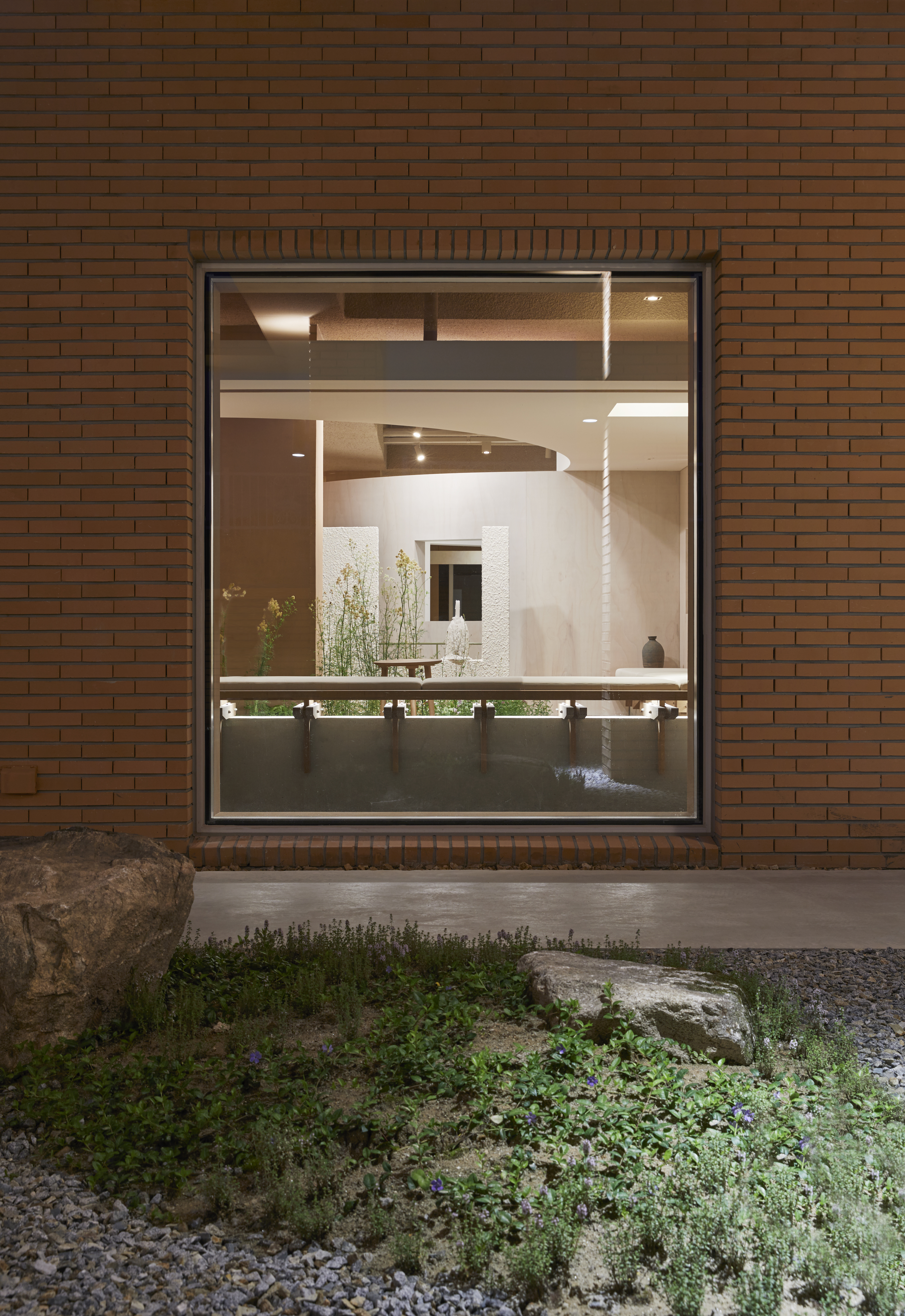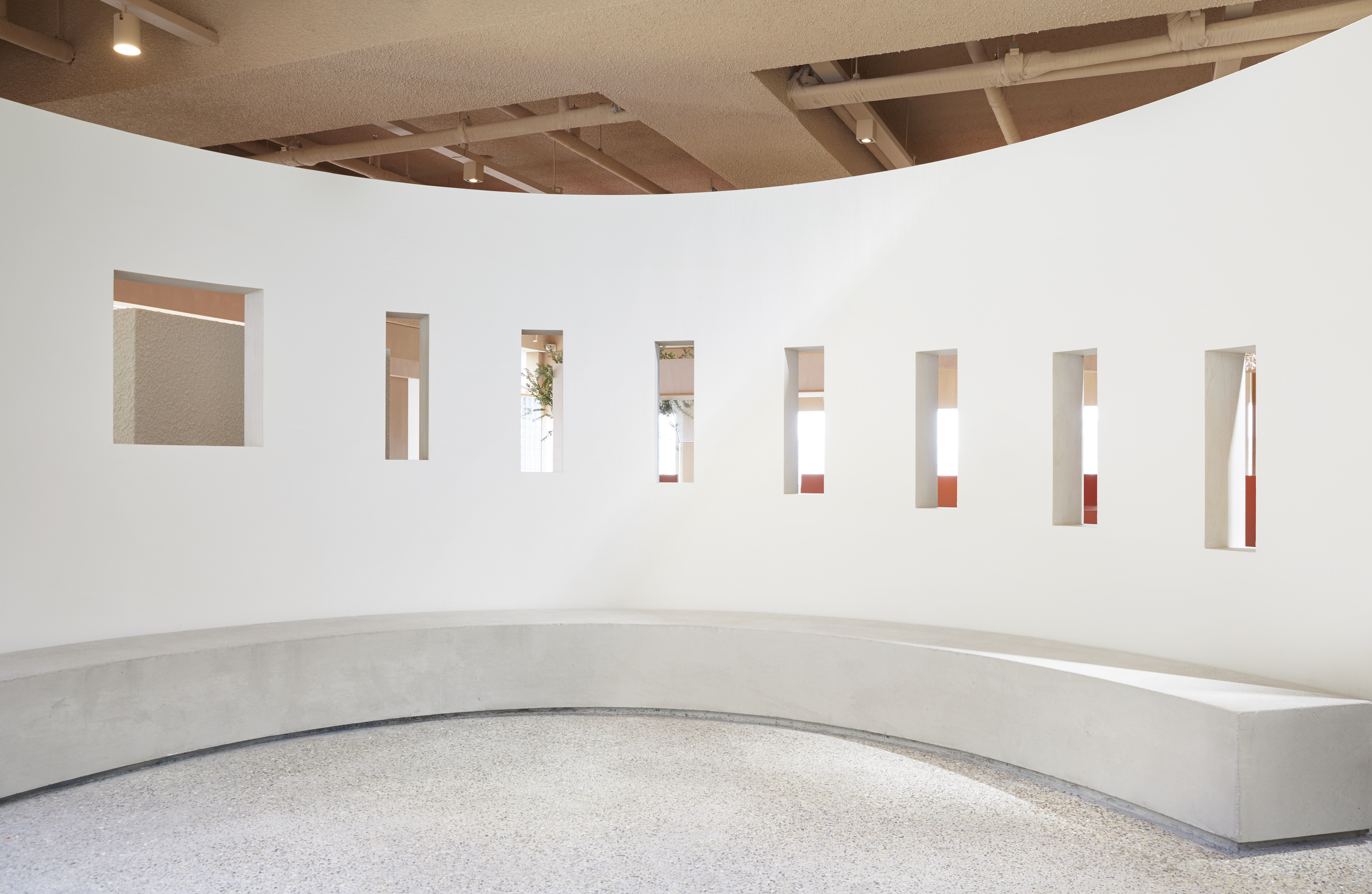 Daejeon MOSP is located gently at the foot of the mountain. You can see downtown Daejeon from now on, and there is Bomunsan Mountain in the back. Located on the top of the fifth floor, MOSP used slow stairs from the ground at the foot of Bomunsan Mountain to the inside of the cafe naturally according to the flow of land. The building viewed from the other side of Bomunsan Mountain is somewhat vertical, but when you enter the cafe from Bomunsan Mountain, you enter with a low and leisurely horizontal mass. The view of downtown Daejeon from the terrace opposite after entering feels like an unfamiliar scenery. The interior of the cafe overlooking the slow stairs has its own comfort. The indoor space is large, but it is not a spacious feeling, but I thought about it so that I could stay cozy and relaxed. A long partition was installed in the space, and doors and windows reflecting various rest behaviors were created.