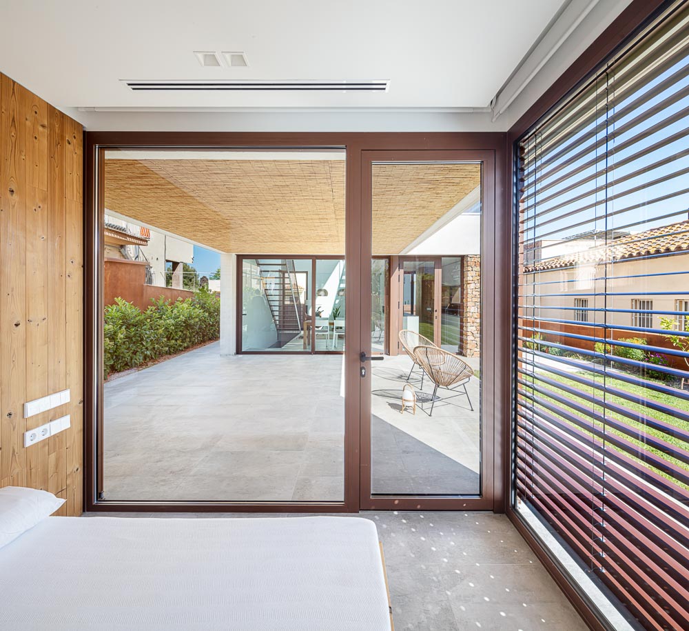 In response to this analysis, the house adopts a singular strategy: the main facade does not face the street; it looks onto the garden, facing south. The entire building is structured towards the garden, but maximum integration is created on the ground floor by a porch in the center of the house that connects the exterior and interior of the house. A constructive discontinuity is created in order to have a central shady space for living and to have the width of the plot free of buildings and in direct contact with the non-built spaces.