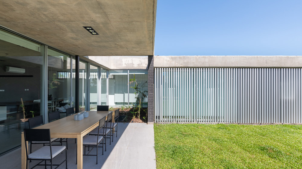 녹지와 내부의 이중적 관계를 보여주는 파티오가 있는 집, 카사 JC