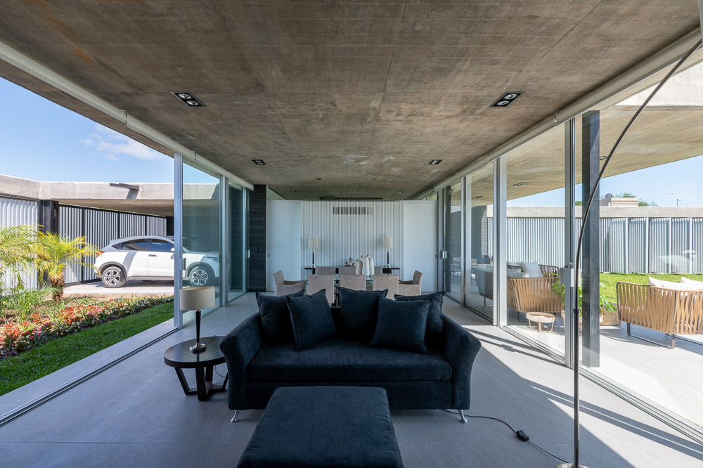 녹지와 내부의 이중적 관계를 보여주는 파티오가 있는 집, 카사 JC