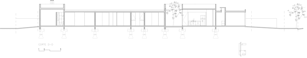 이 집은 도시 외곽에 위치한 동네에 있다. 집의 프로그램은 가족의 관계와 각 가족 구성원의 특성을 기반으로 하여 매우 흥미롭다. 북향의 필지에 지어진 이 집은 방향과 도로변으로부터 프라이버시를 보장하기 위한 조화를 보여준다. 이 집의 향은 프로젝트를 정의하는 동쪽으로 열린 ㄷ자형에서 설계됐다. 이 계획은 거주 가능한 지역을 초목으로 둘러싸고, 거주자가 인식할 수 있는 넓은 외부 공간은 향기로운 식물로 가득 차 있는 반면, 어두운 영역은 집의 측면을 차지하도록 시도하는 것으로 정의된다. 부엌과 거실은 분리되어 있으며, 거주자를 암시하는 관계와 관련하여 비슷한 비율을 유지한다. 입구는 내부의 녹지와 이중적인 관계를 보장하는 파티오를 통해 제안된다. 알루미늄 패널로 지어진 태양열 차양의 모바일 이중 필터가 있기 때문에 집은 내부에서 열리거나 닫힐 수 있다. 정면에서 이 필터는 폐쇄 구조로 작동하고 거리에 대해 폐쇄적으로 작동하여 내부 파티오와의 관계를 강화한다. 이 집은 구조용 석조로 지지되는 노출콘크리트 슬래브와 검은색 벽돌의 이중벽으로 구성된 구조로 지어져 내부와 외부 모두에서 새로운 색채를 인식하도록 한다. 지붕은 노출콘크리트로 지어진 다른 보에 의해 다른 높이로 구성되어 평범하다. ㄷ자형 파티오가 닫혀 있으며 사교 및 바비큐 공간과 독립된 출입구가 있다. 집은 형태와 색채 표현의 종합을 찾기 위해 규모와 이미지를 기반으로 설계됐다.