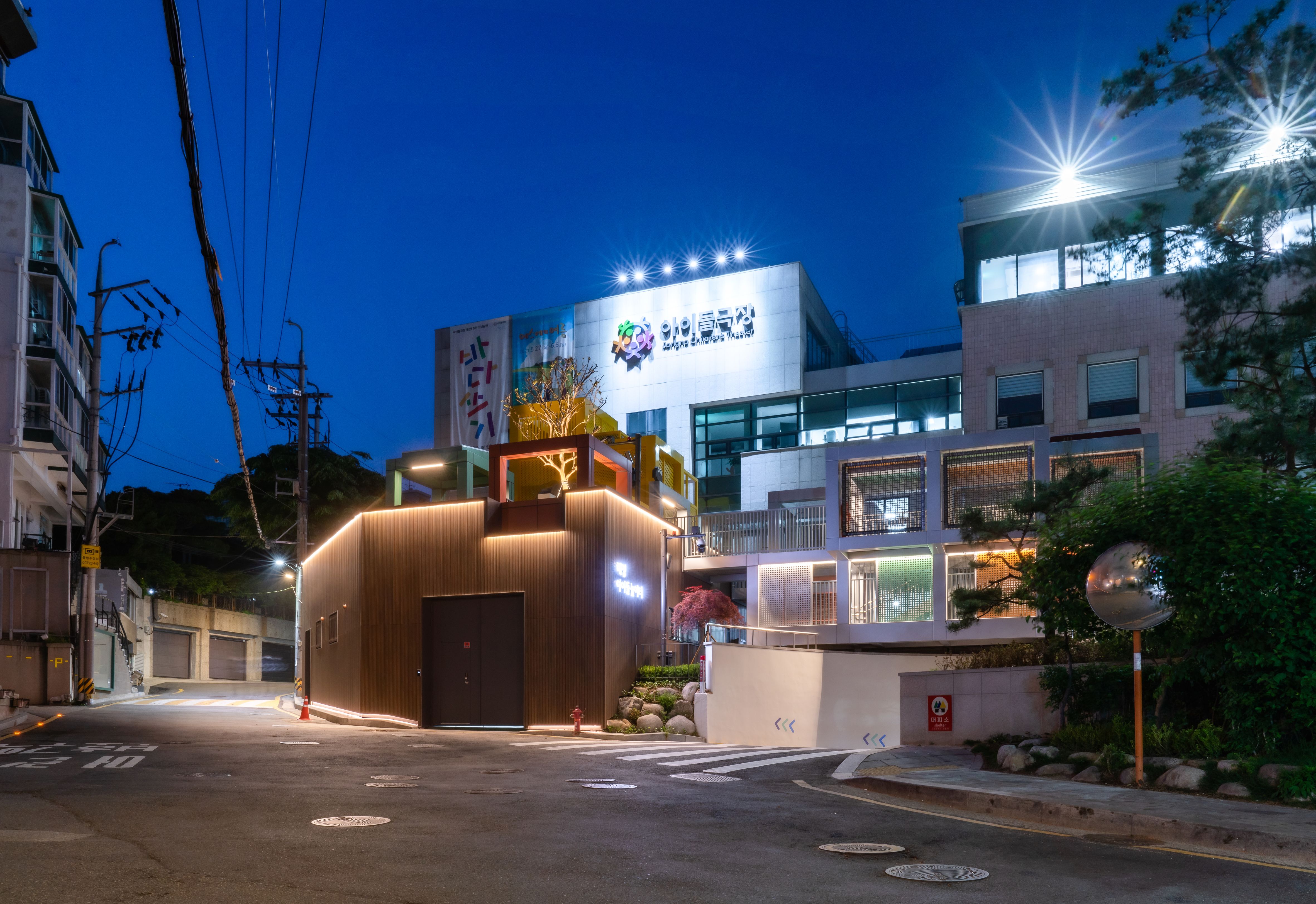 This environmental improvement project improves the structure, insulation, confidentiality, and appearance of the waterworks located on the second floor while maintaining the function of the existing pressurization plant. The old urban infrastructure in the past will create a “waterworks office,” a pleasant workplace for workers, and remodel it with a “pressing ground” that can provide cleaner water to residents. By connecting the roof of the pressurized field and the upper part of the parking lot entrance, an alley observatory and a children’s union playground were planned to transform the pressurized field into a space for children. Places that have not changed for 50 years have now become an environment where you can hear children’s voices and return home safely. The design motif of Hyemyeong Children’s Playground is a cube block that borrows a square from a window of nearby buildings, reconstructs the shape of the square, and reconstructs it in three dimensions. The playground is a “future guardian children’s play facility” that lights up dark alleys with electricity produced directly through the solar module (3.36kW). The space, which has been reborn as ‘Hyemyeong Children’s Playground’ is a monument symbolizing the Children’s Theater and a leading alleyway regeneration project to showcase the Green New Deal for the first time in Korea by Jongno-gu Office, a child-friendly city.