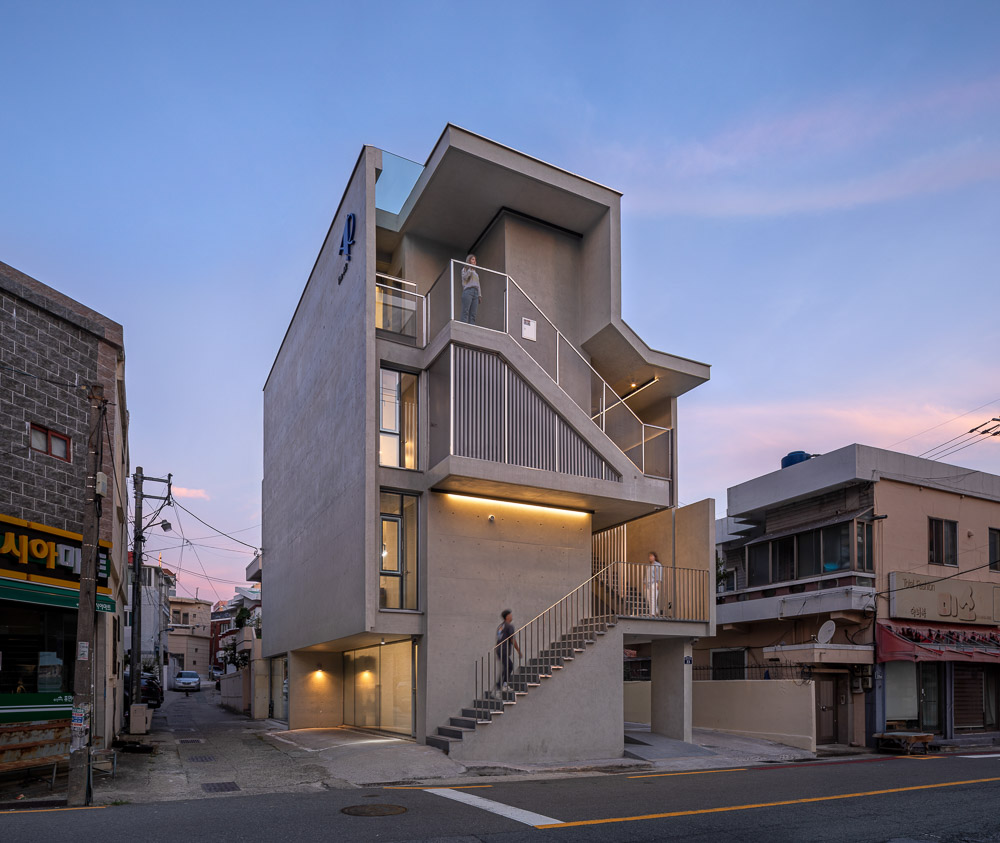 The site is located in a residential area, where traces of the old city such as Chungnyeolsa Temple remain. The land left in the city is connected to the road and adjacent land. The project is to create space on a small site with the maximum floor area ratio created by the law. It is a simple building, but how will it contribute to the urban landscape?