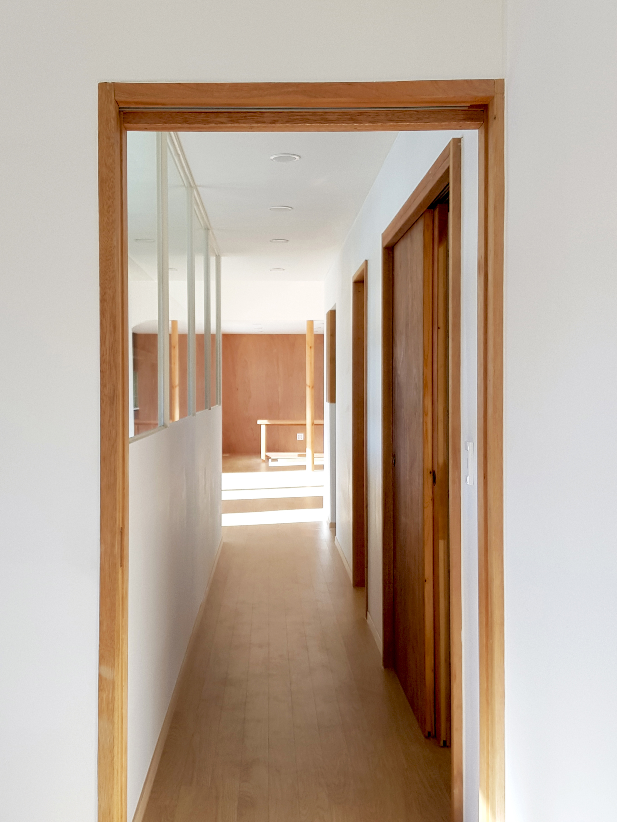 Located in Sineup-ri, Hwacheon, Gangwon-do, 'Gahwamansaseong' is located in a small village in the mountains of Gangwon-do. Old farmhouses have reached their limit of usefulness, and are being converted into new houses one by one. 'Gahwamansaseong is a project in which the owner decided to demolish the farmhouse where the previous owner lived, and build a new house on the land behind it. The design work began through a connected relationship, and it was intended to faithfully reflect the characteristics of rural life and family life. Rather than revealing it, the architect wanted to have an internal stability, and it would be a warm and healthy house that could withstand the harsh winter well. Rather than being greedy, the architect would like to build a house full of the fragrance of life in an appropriate way without overflowing. The land behind the existing farmhouse was on a slope that was being used as a field, so when an embankment was built and the site was cleared, the land was about 1.2m higher than the existing private house. Over the slate roof of the existing private house to be demolished, the spaces were arranged naturally in line with the sunny land with fields and mountains in the distance, and the building was planned with a simple and honest form as much as possible. The entry to the living room and the deck in front of the entrance was planned with a ramp instead of stairs, and the areas in which you spend a long time, such as the entrance, greenhouse, living room, dining room, and bedroom, were arranged so that sunlight and views from the south could be shared. In particular, the southern entrance from the deck was planned as a special welcoming space to this house, allowing it to function as a small greenhouse based on the desire of the owner who likes to grow flowers throughout the house. In addition, the living and dining areas, frequently visited by guests, and the children's rooms and master bedrooms are naturally divided. The entrance and the greenhouse become a single screen when viewed from the inside, distinguishing the nature of the space, and is designed so that whenever you pass through the hallway, you can feel the sunlight and see the panoramic view of the greenhouse and the plants in between. An attic space is provided for the grandchildren so that their daughter’s family can stay, and the interior of the single-story “Gahwa Mansaseong” house is built according to the nature of the space, making the most of the advantages of a single-story house, such as a spacious living room with a gabled ceiling, an attic space, and an integrated guest room. Also, it has different ceiling heights and ceiling shapes.