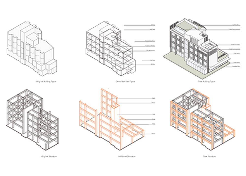 이 프로젝트는, 1996년 준공 뒤 2008년 영업 종료 후 지역에서 버려진 건축물을 수리한 작업이다. 용도 규제의 변화에 따라 대수선을 바탕으로 구조 및 재료를 보강했다. 어떻게 하면 한정된 형태의 틀을 새롭게 구성할 수 있을까? 건축물의 보전과 재활용, 에너지 절감을 위해 고민하였다.
