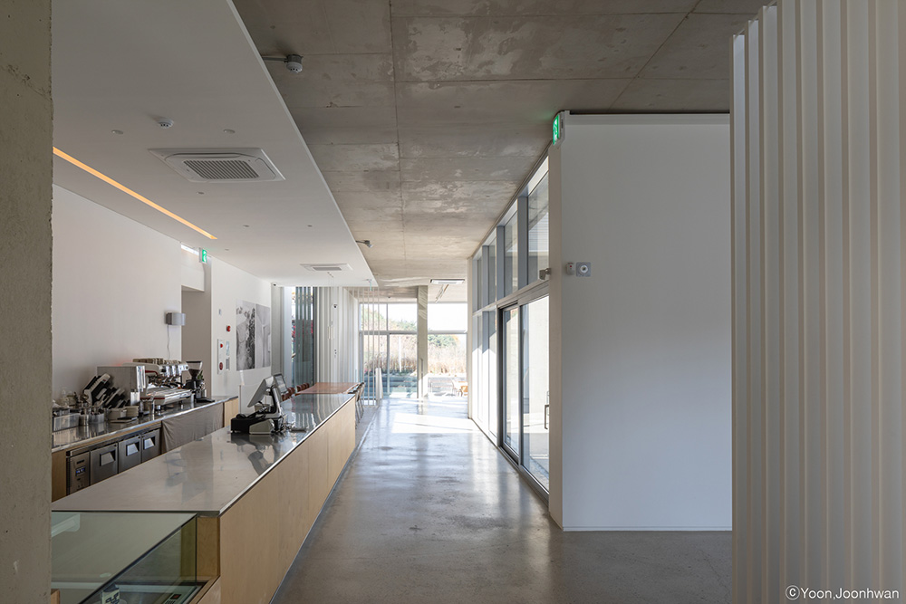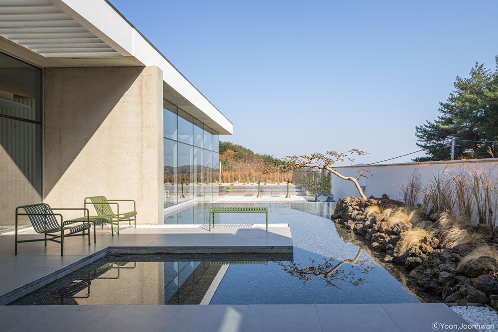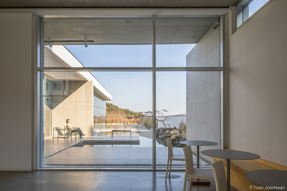 Architecture exists as a background to highlight the work. A water space was planned at the center of the landscape to mediate between the distant view. The artificial horizon contains uncertain boundaries and creates a new natural landscape. The space and the work of art change every moment according to the coordinated perspective and the angle of light. Landscape and architecture, architecture and works of art meet, and color and light are added to the space to be recognized as a third space.