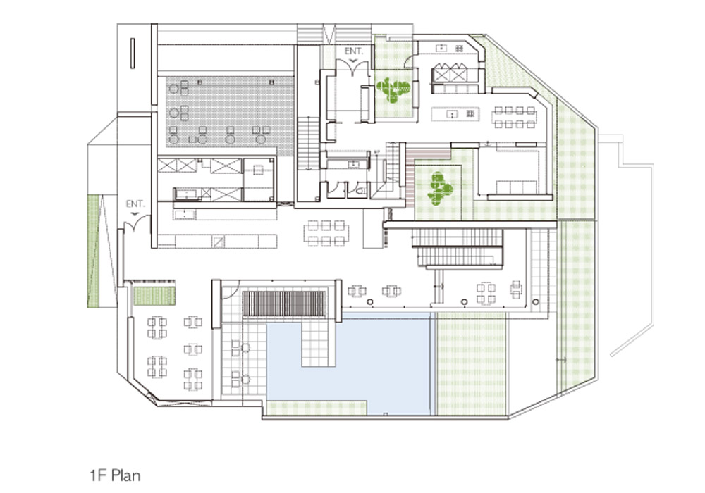 The stepped space using the form of the board connected from the ground and slopes have individuality and are composed of a continuous space. The vertical and horizontal heights and widths in each space create a hierarchy in the space necessary for the use and play a role in guiding the circulation line according to the characteristics. We suggest a rhyme felt in a space that changes according to the circulation.