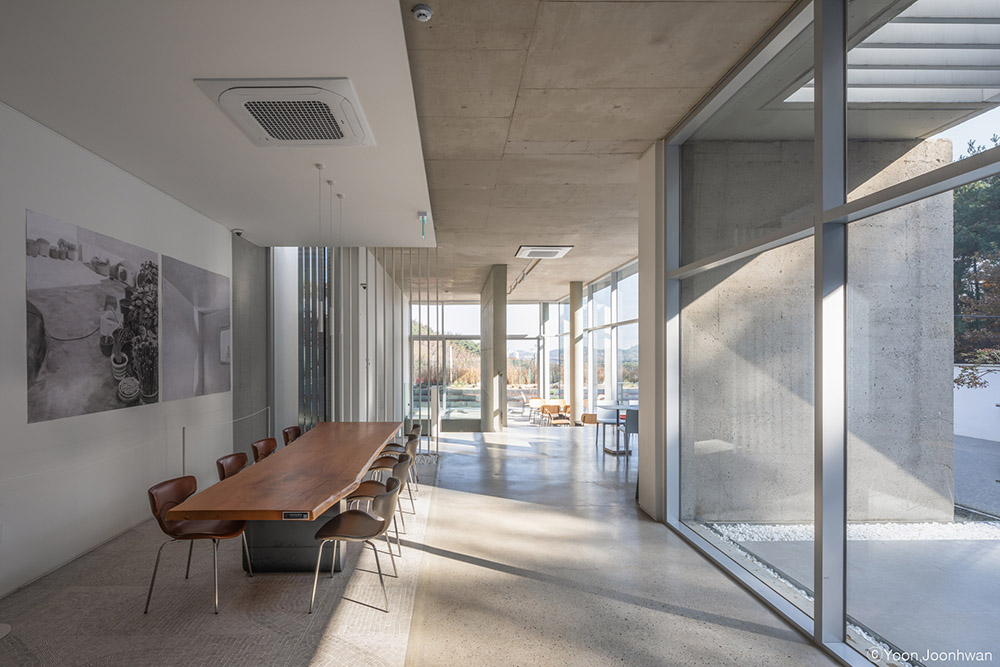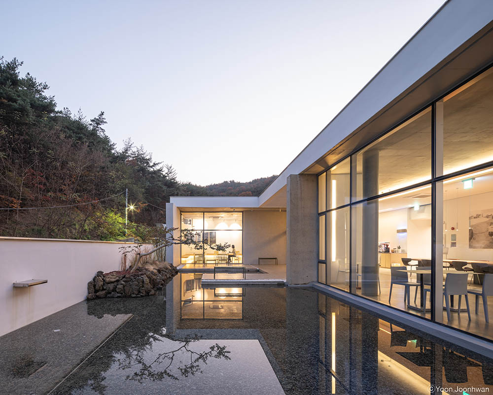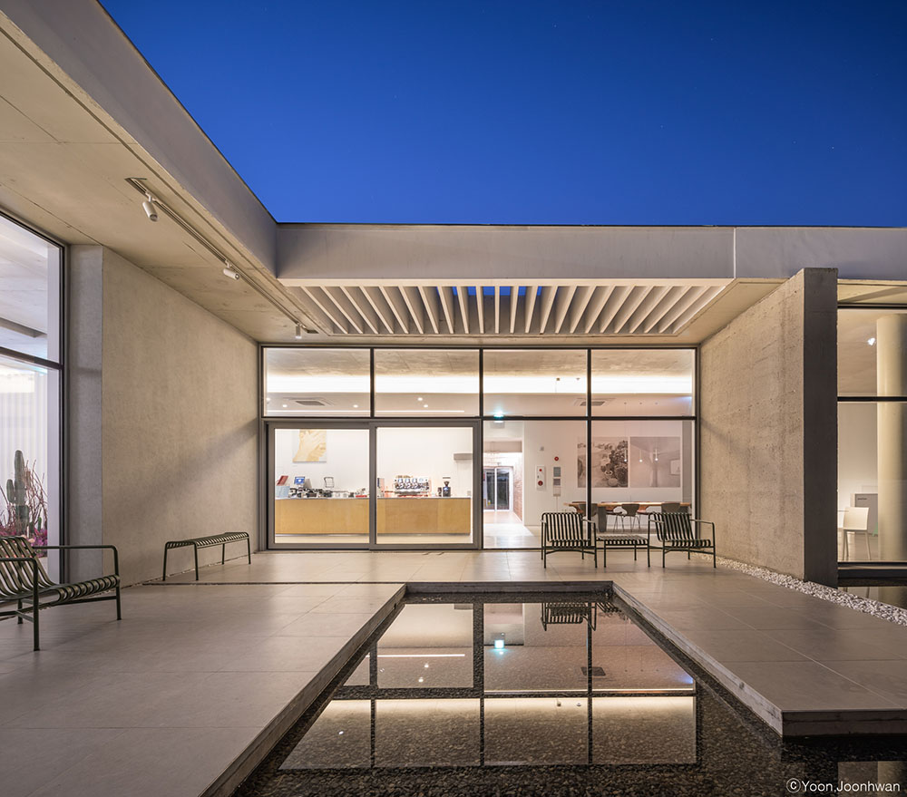 Architecture exists as a background to highlight the work. A water space was planned at the center of the landscape to mediate between the distant view. The artificial horizon contains uncertain boundaries and creates a new natural landscape. The space and the work of art change every moment according to the coordinated perspective and the angle of light. Landscape and architecture, architecture and works of art meet, and color and light are added to the space to be recognized as a third space.