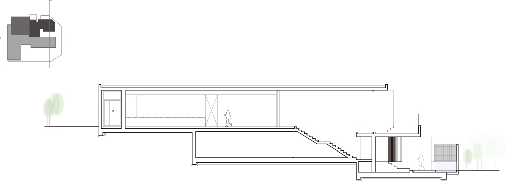 땅에서 연결된 판의 형태와 경사지를 이용한 계단식 공간은 개별성을 가지는 동시에 연속적인 공간으로 구성된다. 각 공간에서의 수직, 수평의 높이와 폭은 용도에 맞는 필요한 공간에서 위계를 만들고 특성에 맞춘 동선을 유도하는 역할을 한다. 동선에 따라 변화하는 공간에서 느껴지는 운율을 제안한다.