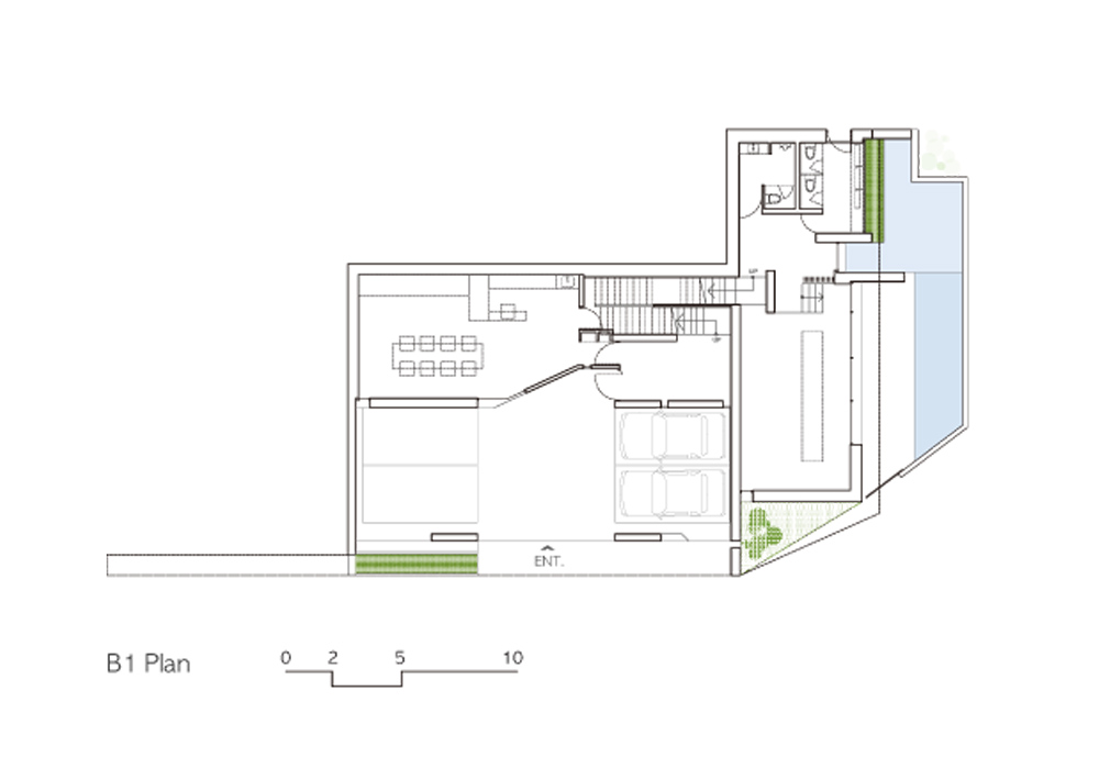땅에서 연결된 판의 형태와 경사지를 이용한 계단식 공간은 개별성을 가지는 동시에 연속적인 공간으로 구성된다. 각 공간에서의 수직, 수평의 높이와 폭은 용도에 맞는 필요한 공간에서 위계를 만들고 특성에 맞춘 동선을 유도하는 역할을 한다. 동선에 따라 변화하는 공간에서 느껴지는 운율을 제안한다.