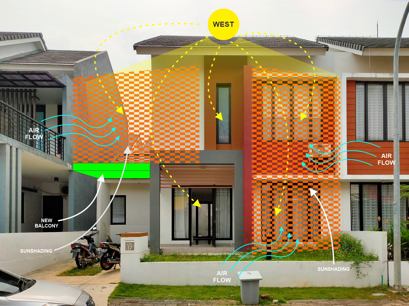덥고 습한 열대 기후를 가진 인도네시아 탄게랑에 옛 주택을 개조하여 만들어진 DJ 하우스가 있다. 대지에 있던 옛 주택은 저녁에도 무더운 이 지역의 기후와 맞지 않는 부분이 많았으며, 시각적으로 노후화되어 있는 상태였다. 건축가는 젊은 가족인 건축주를 위하여 완전히 새로운 외관과 햇볕을 막고 공기의 순환을 돕는 몇가지를 제안했다.