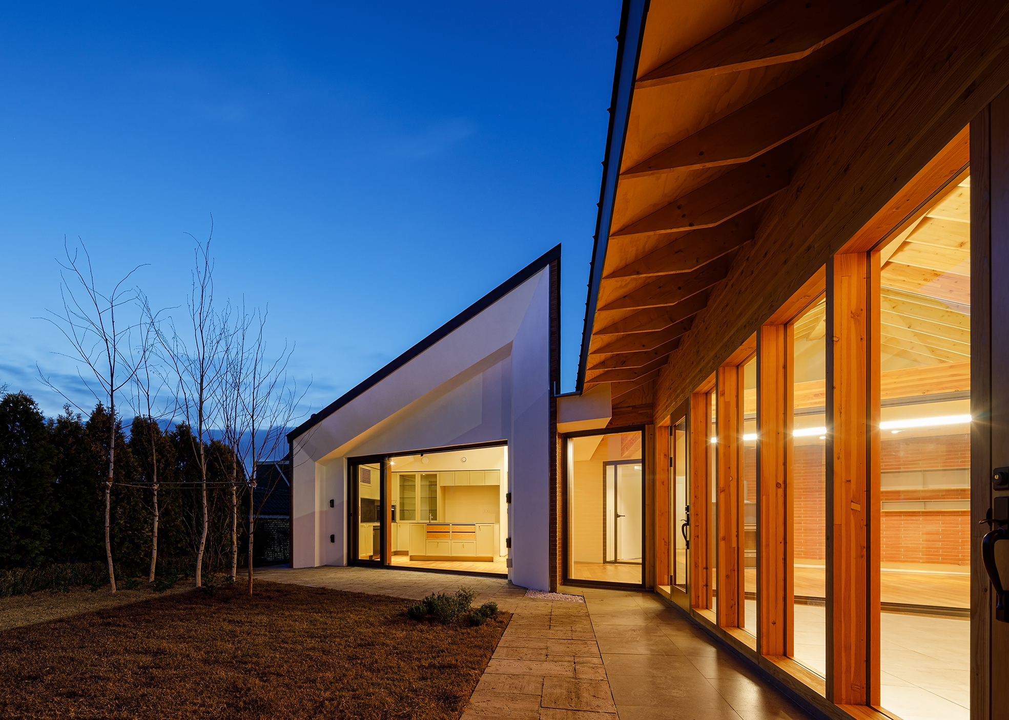 대지는 200평이 조금 안 되는 땅으로, 3.5m 높이의 두 개의 축대로 나뉘어 있는 남쪽이 뾰족한 삼각형 모양이다. 꽃과 나무를 가꾸고 붓글씨를 즐기는 건축주의 요구사항은 작은 온실이 있는 마당이었고, 이 온실을 거실 모서리에 연결시켜 ‘동춘온실 東春溫室’을 완성했다.