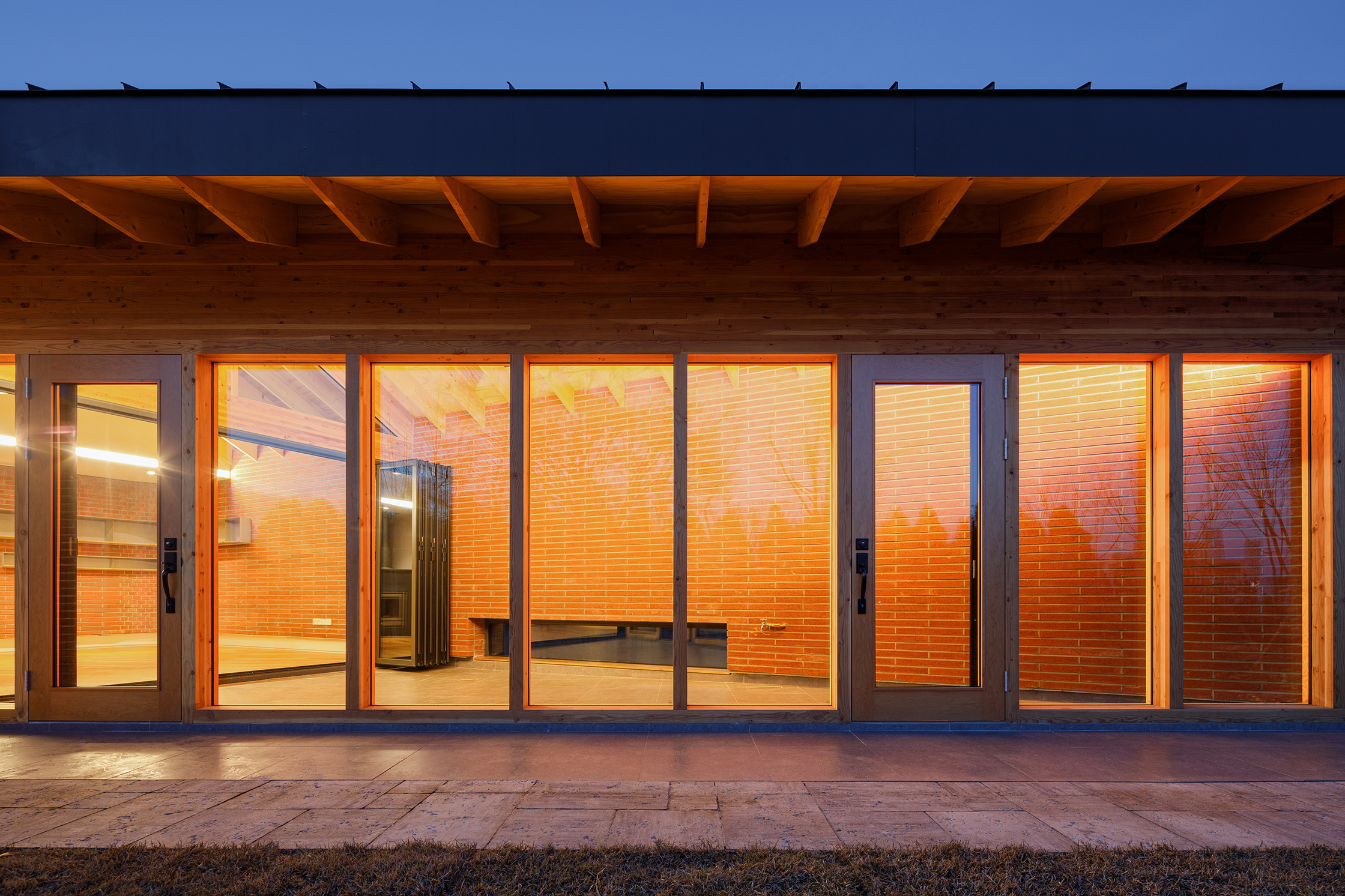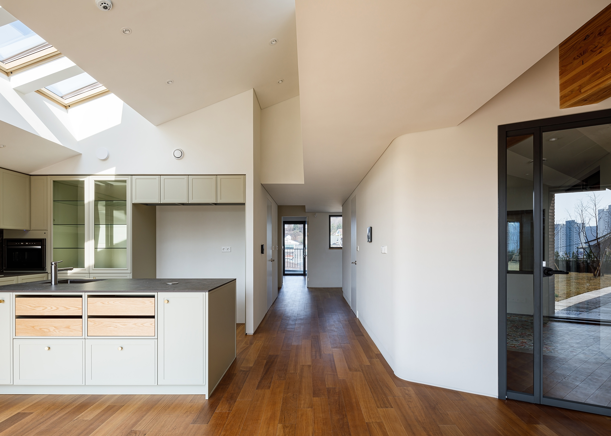 대지는 200평이 조금 안 되는 땅으로, 3.5m 높이의 두 개의 축대로 나뉘어 있는 남쪽이 뾰족한 삼각형 모양이다. 꽃과 나무를 가꾸고 붓글씨를 즐기는 건축주의 요구사항은 작은 온실이 있는 마당이었고, 이 온실을 거실 모서리에 연결시켜 ‘동춘온실 東春溫室’을 완성했다.