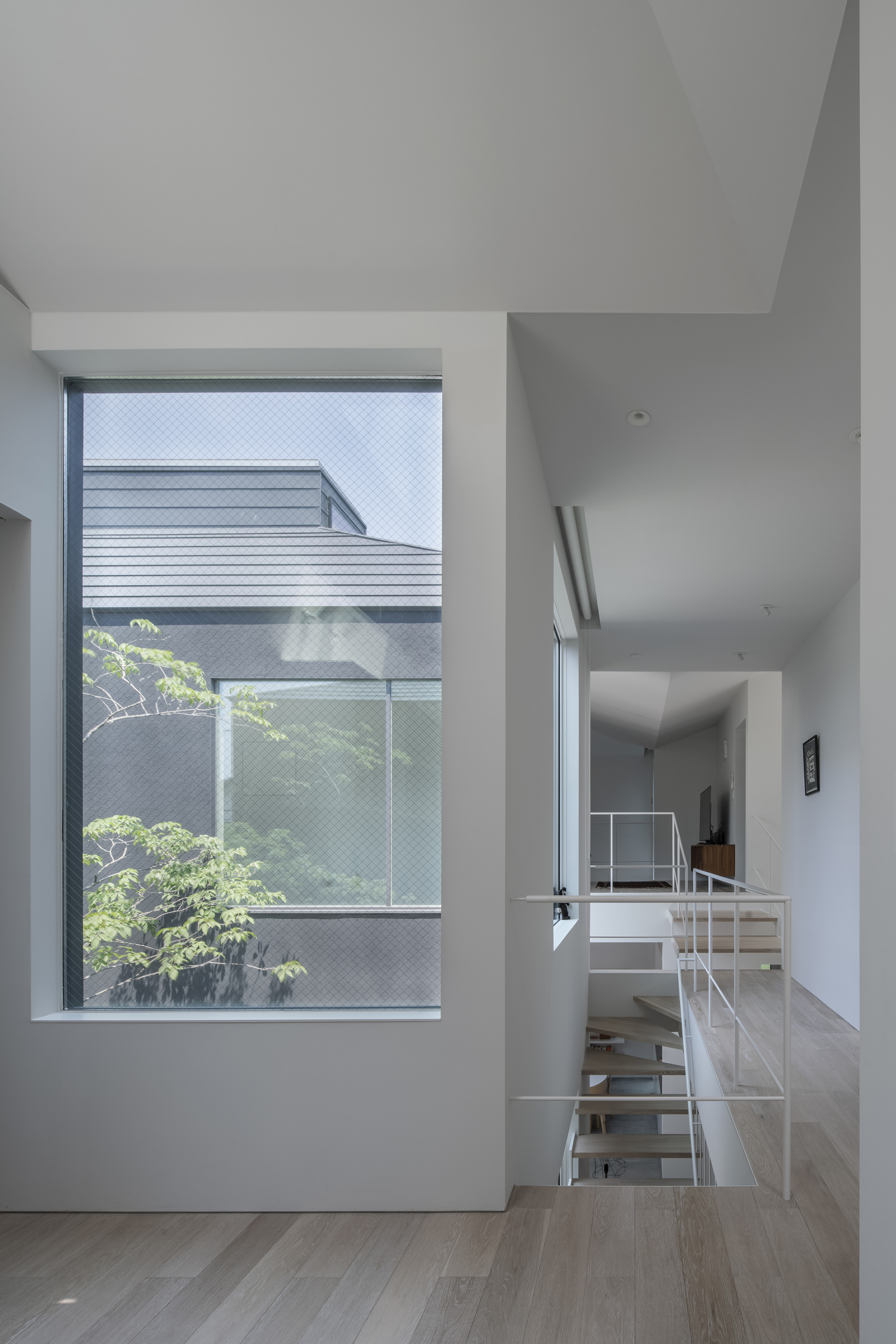 House in Chikusa is a new-build home, located in Nagoya, Japan. The site sits within a dense urban context and is surrounded by residential buildings, making this a challenging plot to consider a design that is outward-looking to the city. The architecture responds to this restrictive setting with an intricate massing consisting of five ‘boxes’ with a diverse range of openings that carefully bring in daylight, air and views into the house without disrupting the neighbouring landscape. These ‘boxes’ are connected to provide continuous spaces, ensuring an internal environment that is full of choices. This encourages each inhabitant to interpret the spaces differently and select their own comfortable distance between each other through dwelling experience.
