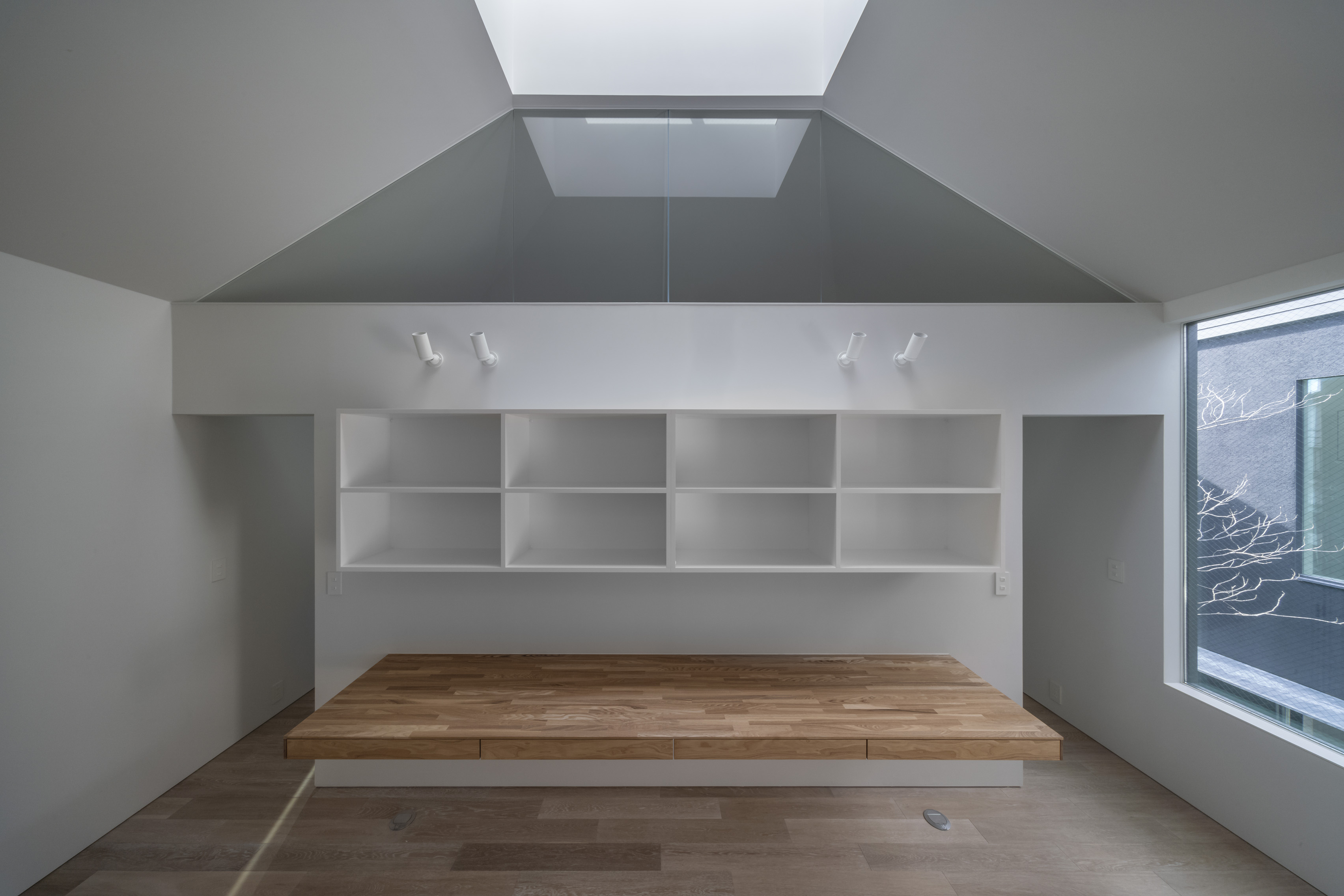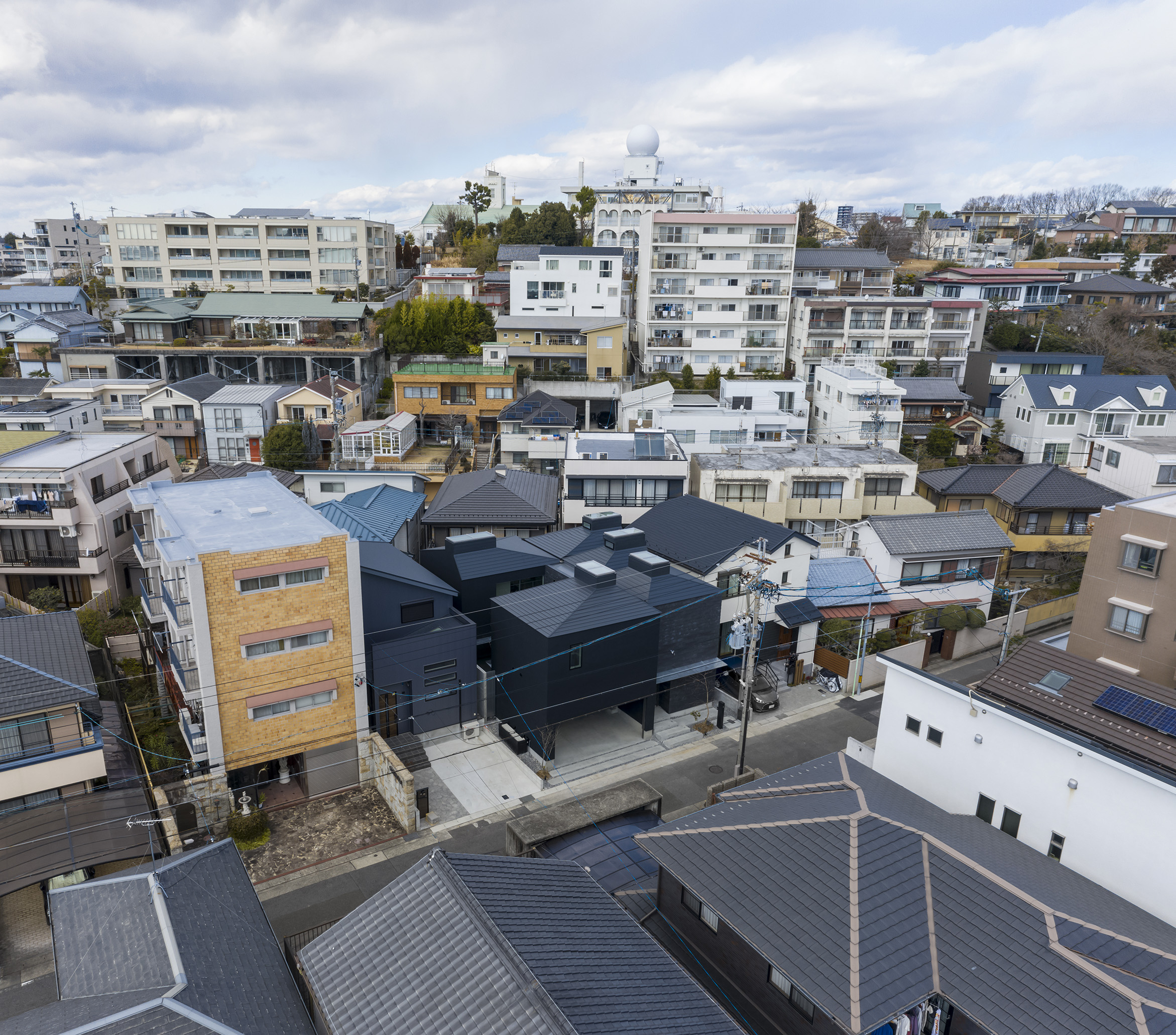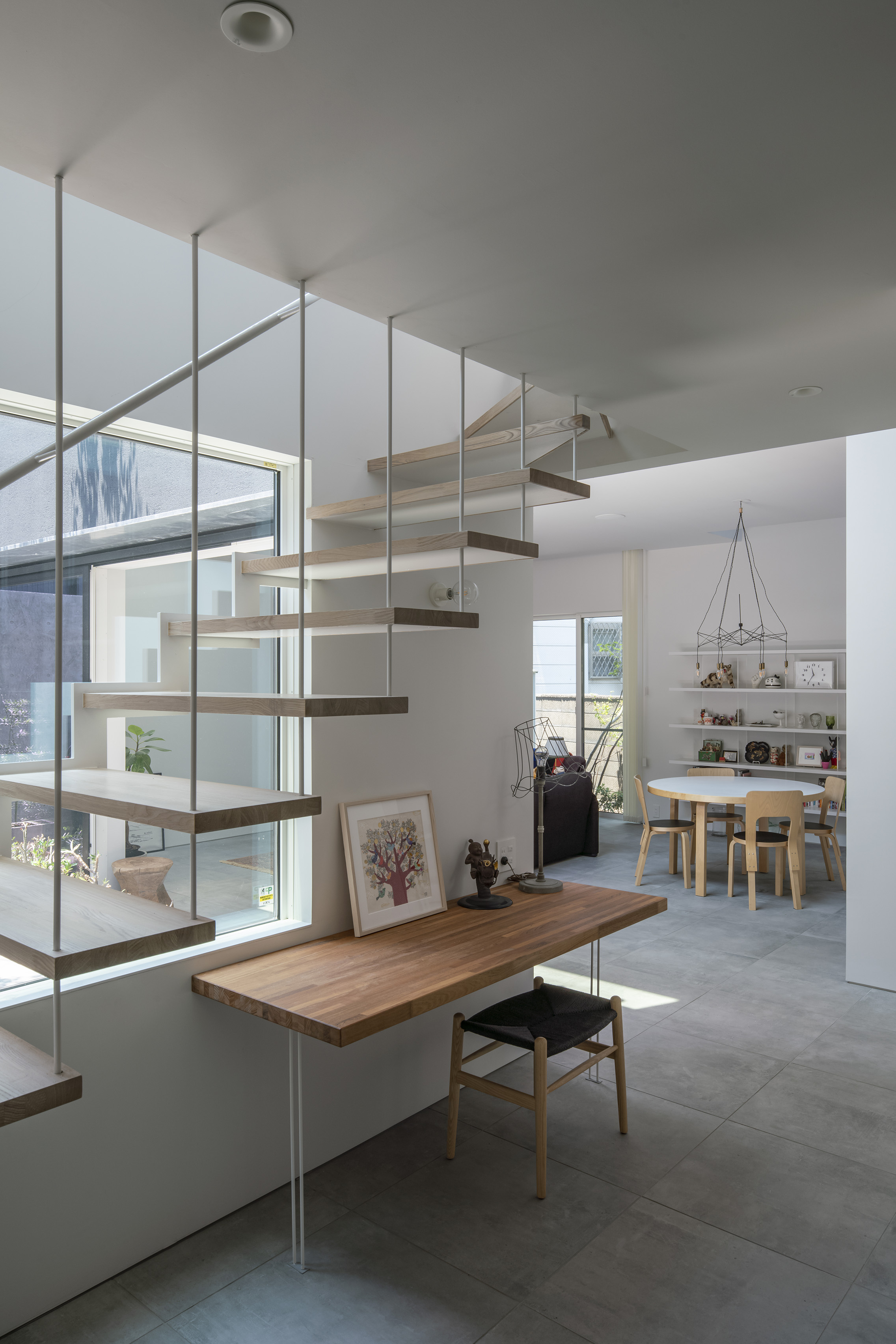 House in Chikusa is a new-build home, located in Nagoya, Japan. The site sits within a dense urban context and is surrounded by residential buildings, making this a challenging plot to consider a design that is outward-looking to the city. The architecture responds to this restrictive setting with an intricate massing consisting of five ‘boxes’ with a diverse range of openings that carefully bring in daylight, air and views into the house without disrupting the neighbouring landscape. These ‘boxes’ are connected to provide continuous spaces, ensuring an internal environment that is full of choices. This encourages each inhabitant to interpret the spaces differently and select their own comfortable distance between each other through dwelling experience.