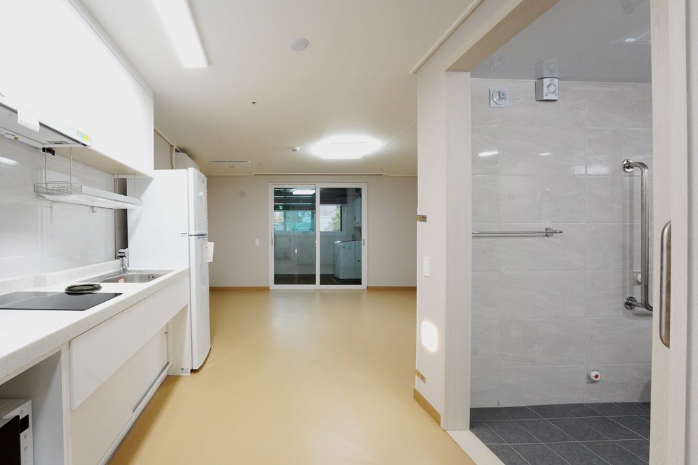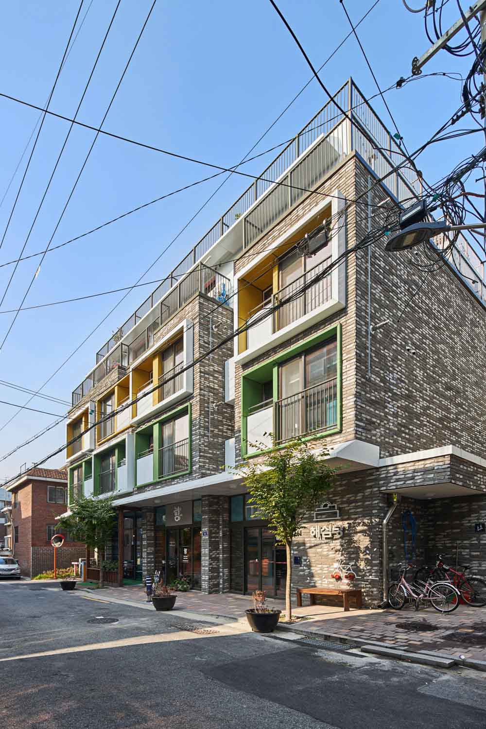Haesimdang is an LH rental housing pilot model that responds to an aging society and aims to give a positive image of public rental housing to the region by contributing to the publicity and realizing social values in the city center. Haesimdang, which means “a house where we can live comfortably,” combines residential convenience facilities and services such as health and care so that we can live in harmony with the local community. This public housing is designed to accommodate the elderly as well as those with reduced mobility. The first floor is a space for the disabled, the second floor is a space for the elderly women, the third floor is a male elderly person, and the fourth floor is an elderly couple type to compose the space to suit the characteristics of the generation. A local community space was installed on the first floor adjacent to the roadside to provide a place of rest for local residents with inexpensive cafes and drinks. It is designed to allow rest, exchange and leisure activities to take place through the common living room, a community facility on each floor, and to find work in the rooftop eco- garden.