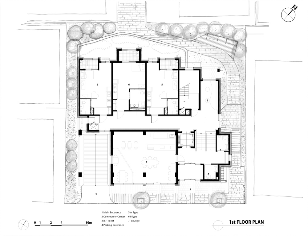 In the meantime, negative stereotypes about Public rental housing continued to exist in Korean society. Haesimdang will be a model that represents the possibility of the coexistence of architecture and nature in the city center as well as the pride of our neighborhood through spatial planning and architectural design specialized for the region and residents. It expects that it will improve the self-esteem and independence of the elderly, and will pursue healthy and positive coexistence with the local community.